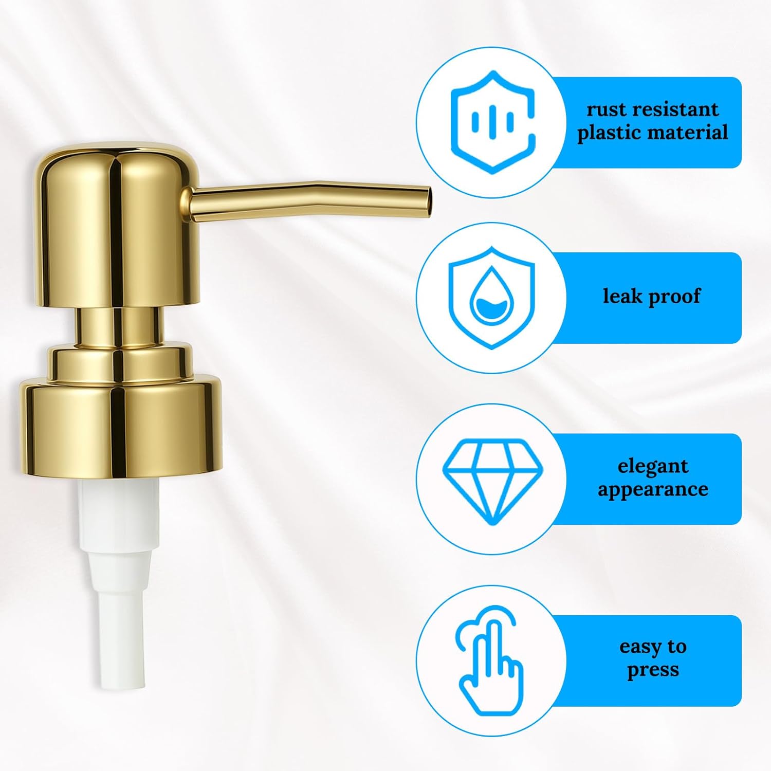 2 Pack Gold Soap Dispenser Pump Replacement Top Dispenser Pumps Refill Dispensers Liquid Hand Soap Dispensers Soaps Pumps Replacement for Lotion Regular Glass Mouth Bottles