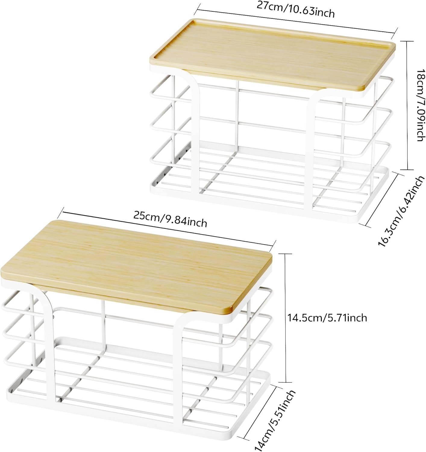 - Wide Applications:Standard size basket frame and bamboo top design make it perfect for multiple uses. Use it on kitchen countertops, on cabinet shelves and in the pantry to store potatoes and onions, etc. Also suitable for under the sink in the kitchen and bathroom, laundry room organization and storage, etc