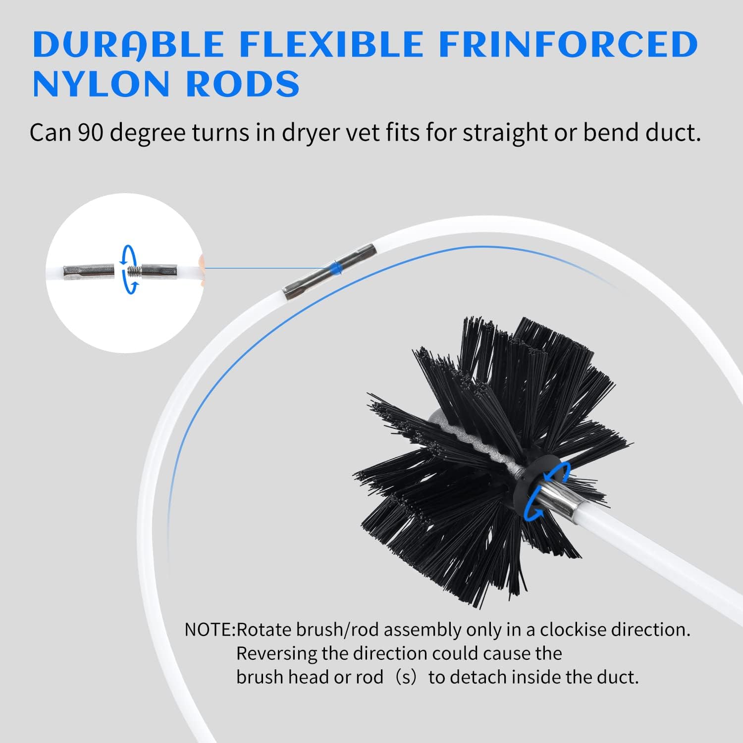 - Home Essentials: HOKLNUSE chimney sweep kit includes a 4" and a 6" quality synthetic brush head and flexible rods that extend up to expected feet to meet your lint remove requirement