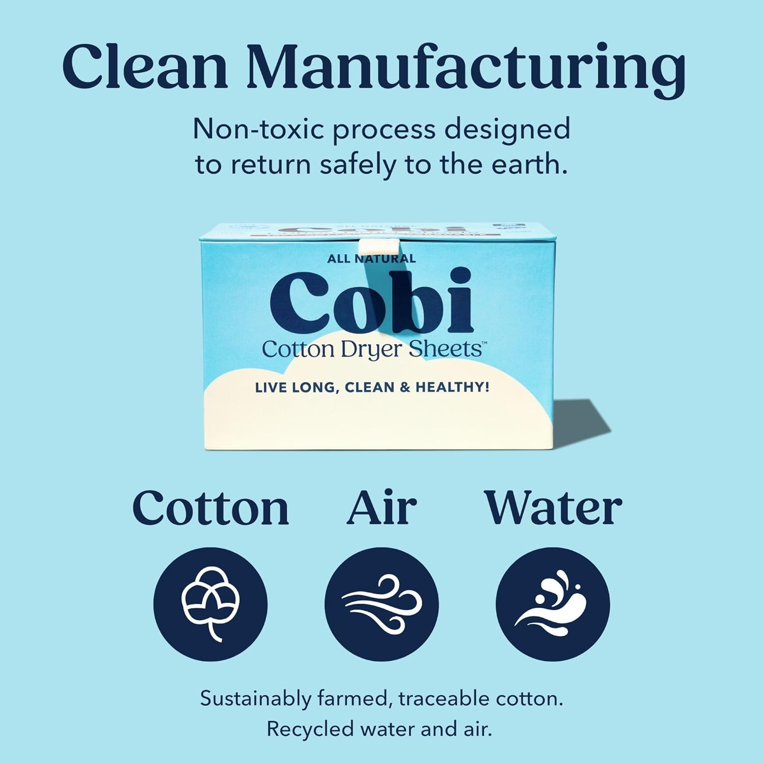 Cobi Biodegradable Non-Toxic Dryer Sheets – Naturally Scented Cotton Dryer Sheets – Eco-Friendly, Plant-Based, Plastic-Free – 120 Count