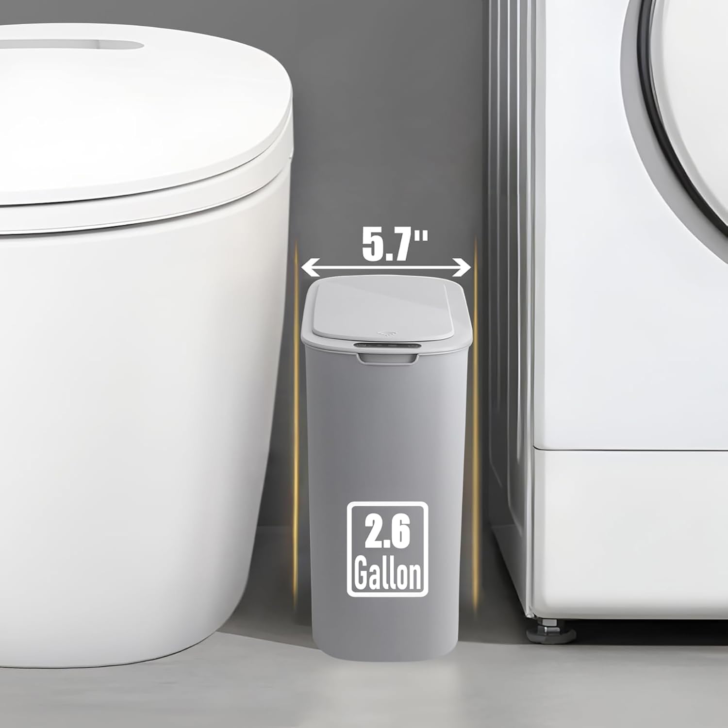 Automatic Motion Sensor Bathroom Trash Can with Lid, 2.6 Gallon Touchless Trash Bin, Smart Garbage Can Plastic Slim Wastebasket for Bedroom, Office, Dorm (Grey)