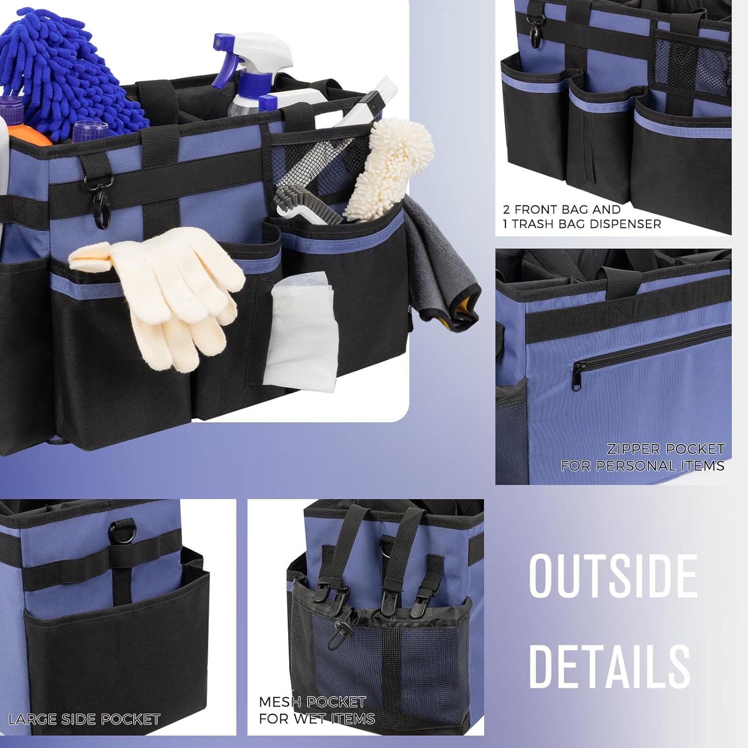 - Large Wearable Cleaning Caddy: Our cleaning organizer bag is perfect for storing cleaning supplies & tools, measures 15.7 x 9.6 x 9.1 inches. Cleaning caddy bag with handle and adjustable shoulder straps for easily cleaning in the home, kitchen, sink, car, and outside. Keep your cleaning items well-organized and neatly. Great for maids and housekeepers