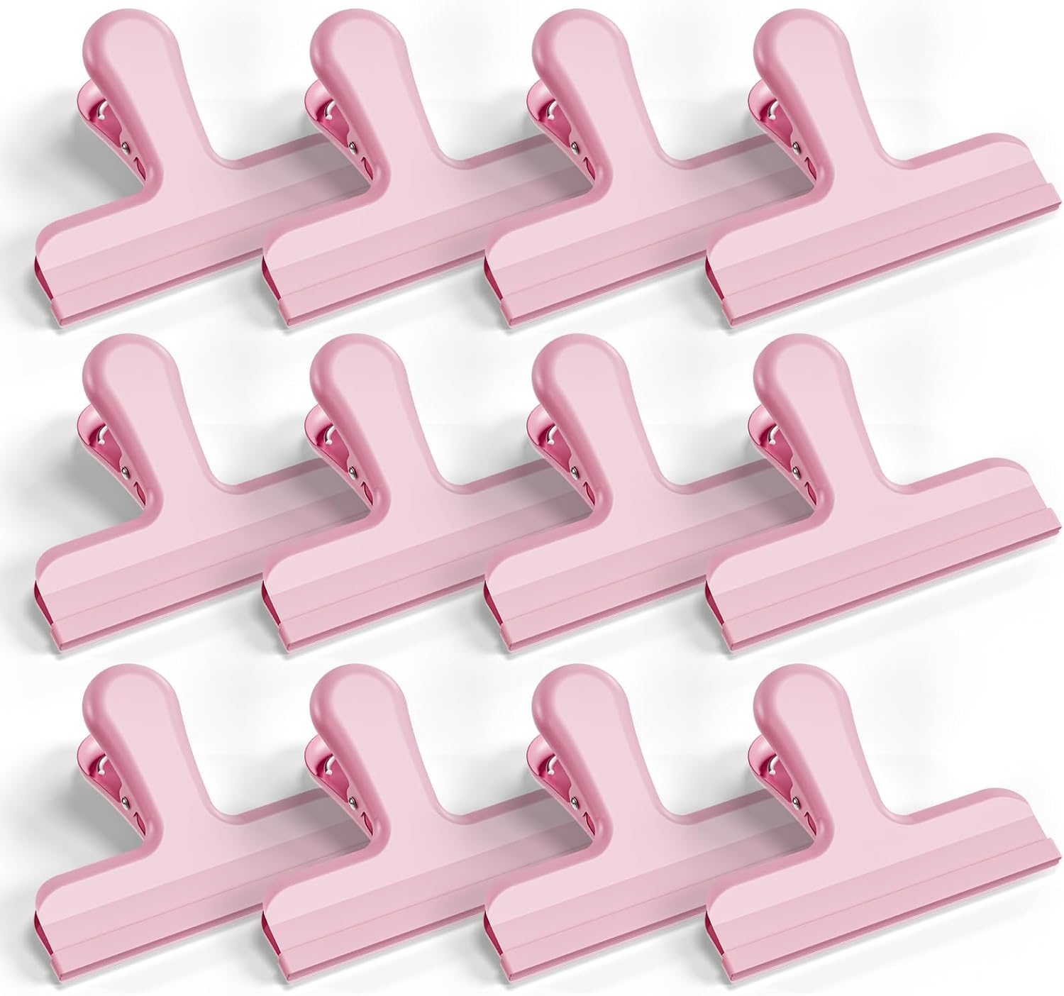HOUSE AGAIN 12 Pack Stainless Steel Chip Bag Clips Covered with Silicone - NO More Sharp Edges - Color Coded for Food Bags - Air Tight Seal, Heavy Duty for Kitchen and Office, 3 Inches Wide, Pink