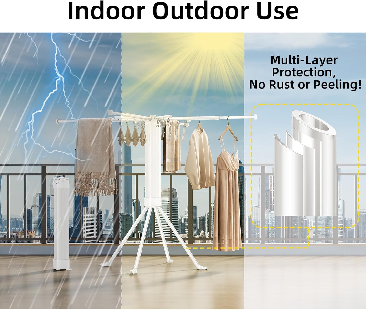 - 【Efficient Space-Saving Design】Our portable clothes drying rack is the ideal solution for small apartments without a dryer. It neatly collapses into a streamlined 3.38" x 3.38" x 30" tube, easily tucked into a corner, closet, or under the bed. Its dust-proof design keeps the rack clean during storage, letting you use it immediately after unfolding