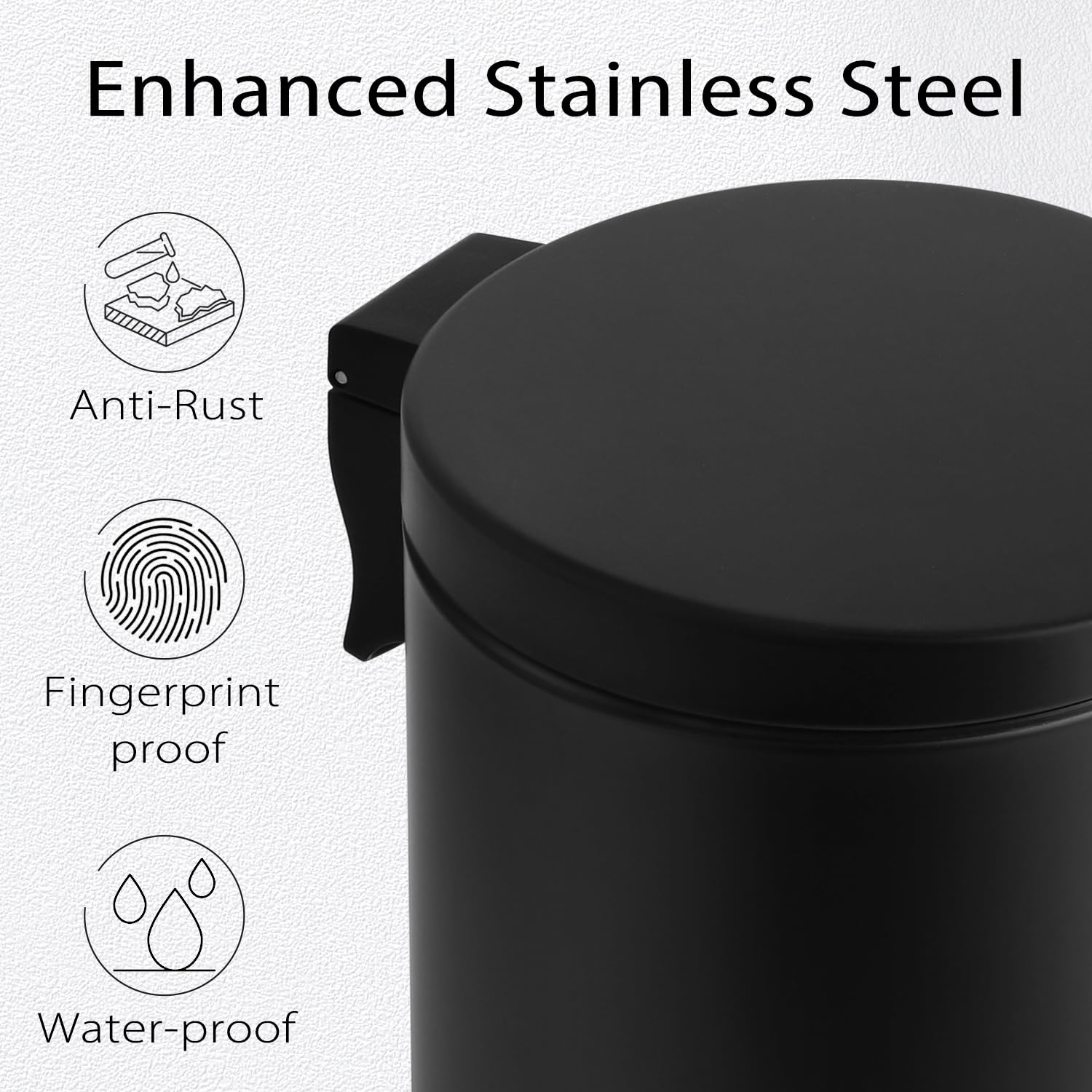 - Strong Steel Pedal: The pedal of the trash can is engineered to last over 150,000 steps — that's more than 20 steps a day for 20 year