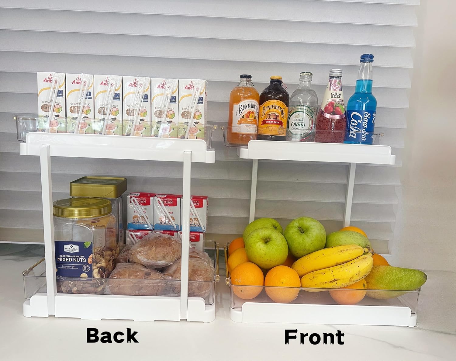 - 【2-Tier L Shape Design for Easy Access】 The 2 - tier L - shaped design allows easy access to tall items like cleaning supplies, toiletries, or snacks .The trays for both upper and lower tiers are removable and washable.