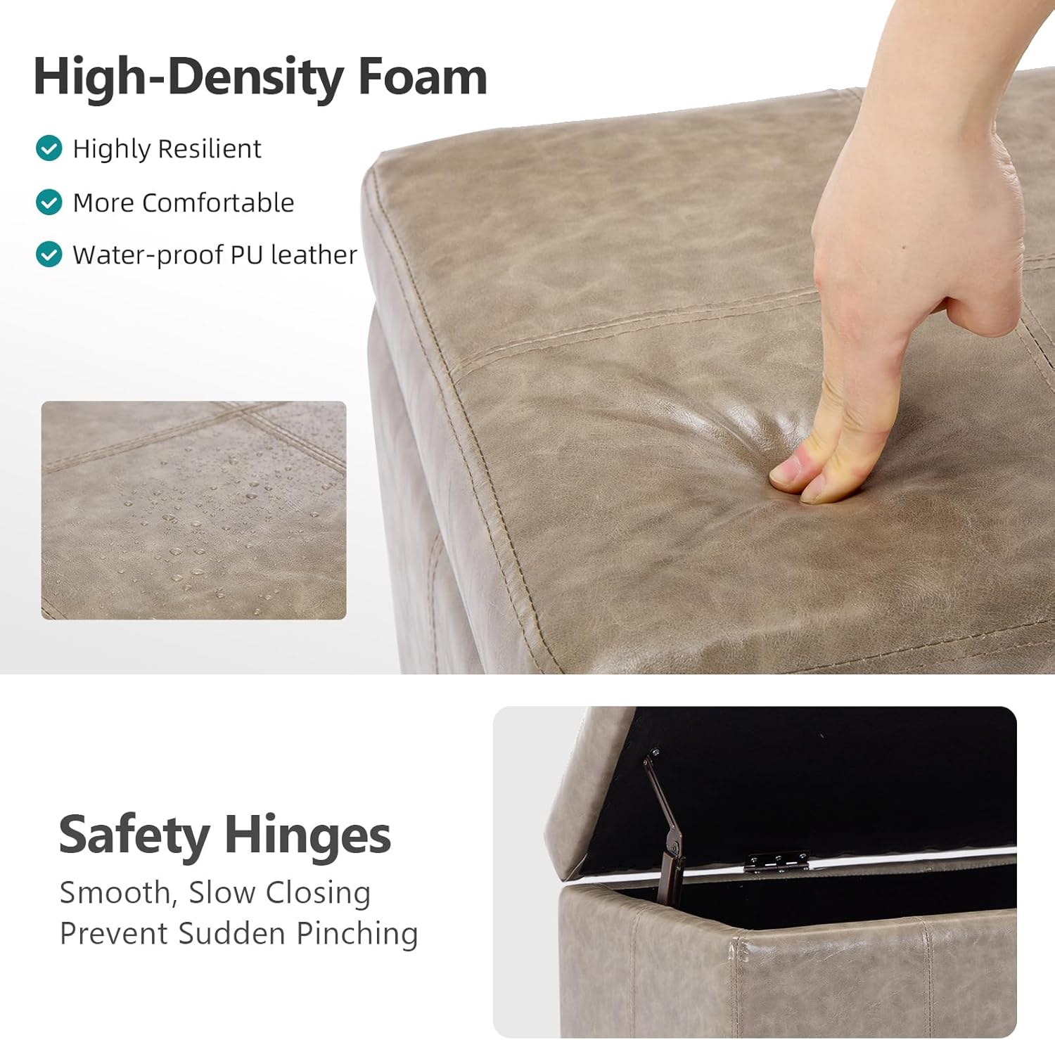 - 【Premium Material】: Experience elegance and practicality with our storage ottoman. Made from premium faux leather, it resists water and stains for hassle-free cleaning. Its solid wood frame and moisture-resistant plastic legs offer durability, while the high-resilience foam adds comfort, making it perfect as a storage bench or a coffee table with storage