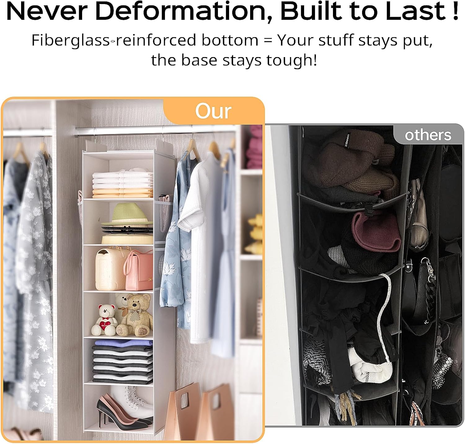 - ✅【Reinforced Structure – No Sagging, No Deformation】Built with fiberglass-reinforced bottoms and premium thick fabric, ensuring every shelf stays flat, strong, and stylish — even when fully loaded.