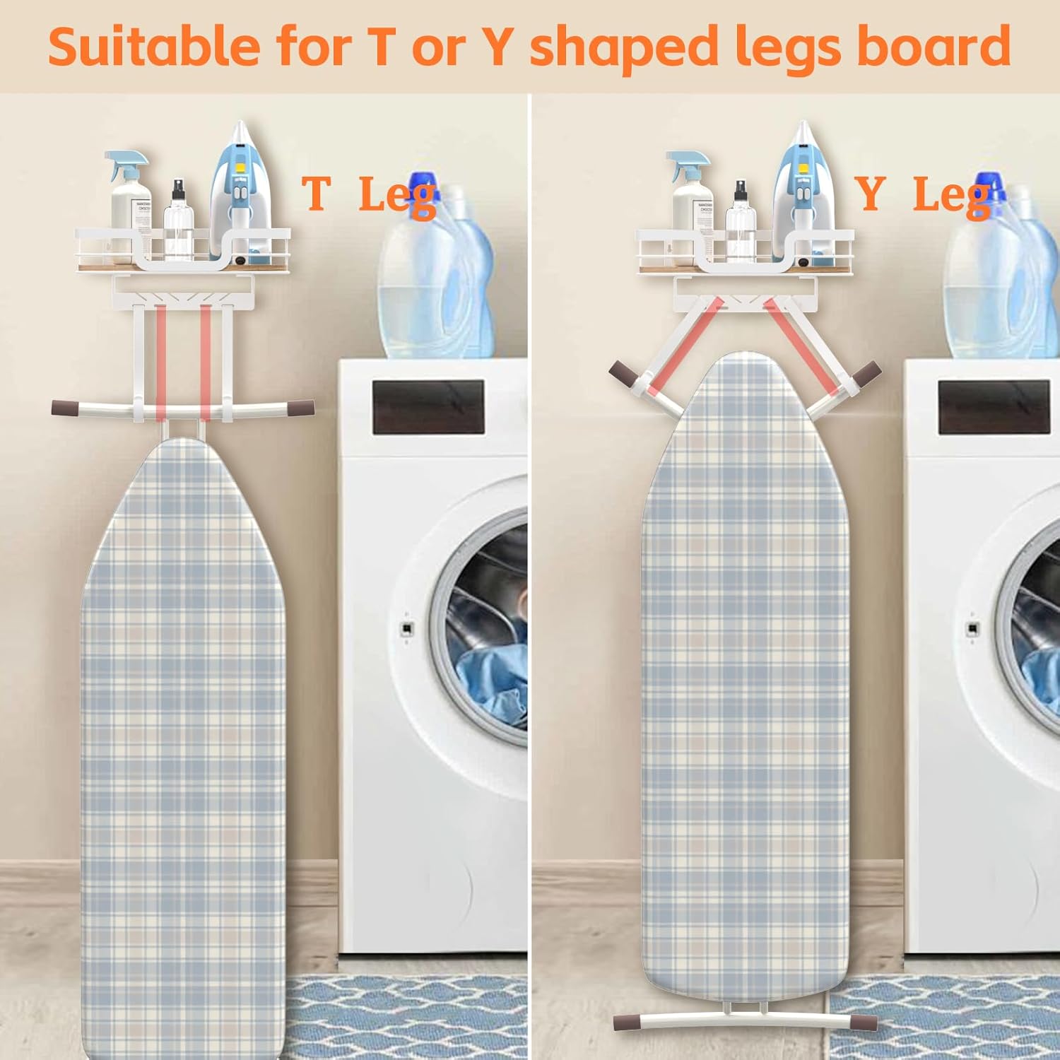 - MAKING YOUR HOME TIDY: The shelves for room wall small iron board hanger can keep all your items in one place, effectively use and organize your space. The ironing board hanger comes with storage metal wooden baskets and removable hooks to hold your iron, ironing stand, spray bottle and other ironing accessories for easy access.