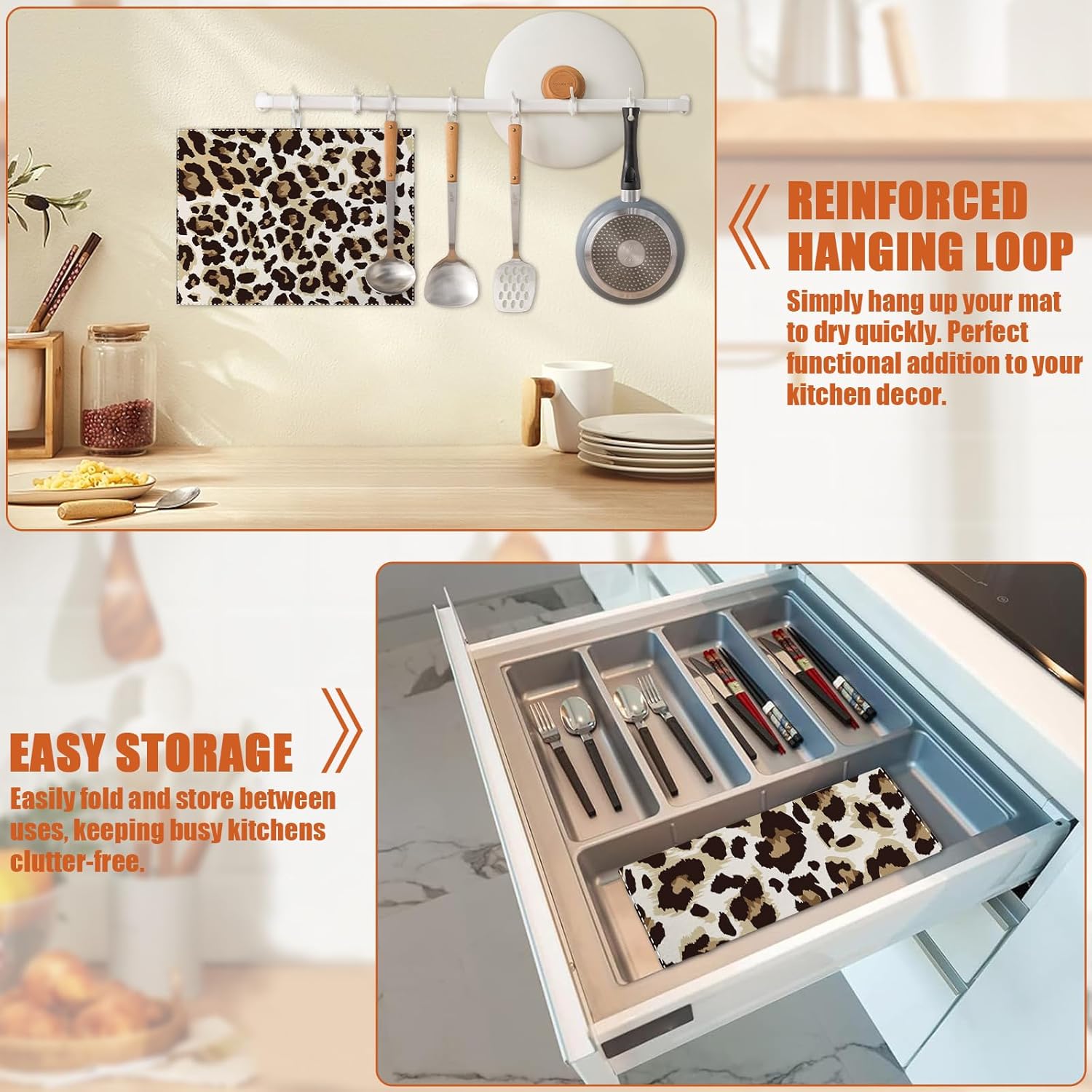 Brown Leopard Dish Drying Mat for Kitchen Counter Microfiber Absorbent Dish Kitchen Drying Mat Draining Reusable Washable for Dishes/Utensils/Counterto