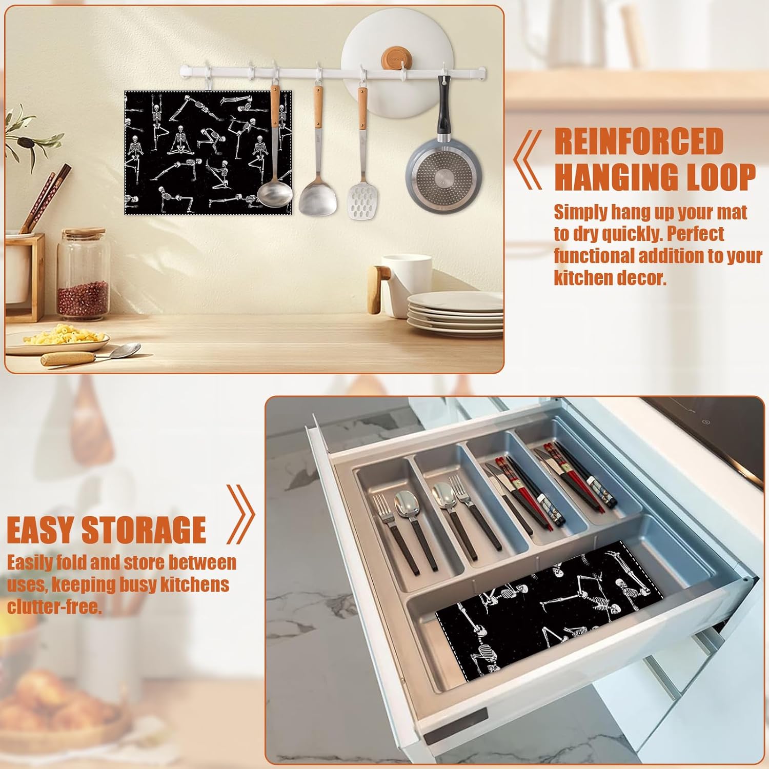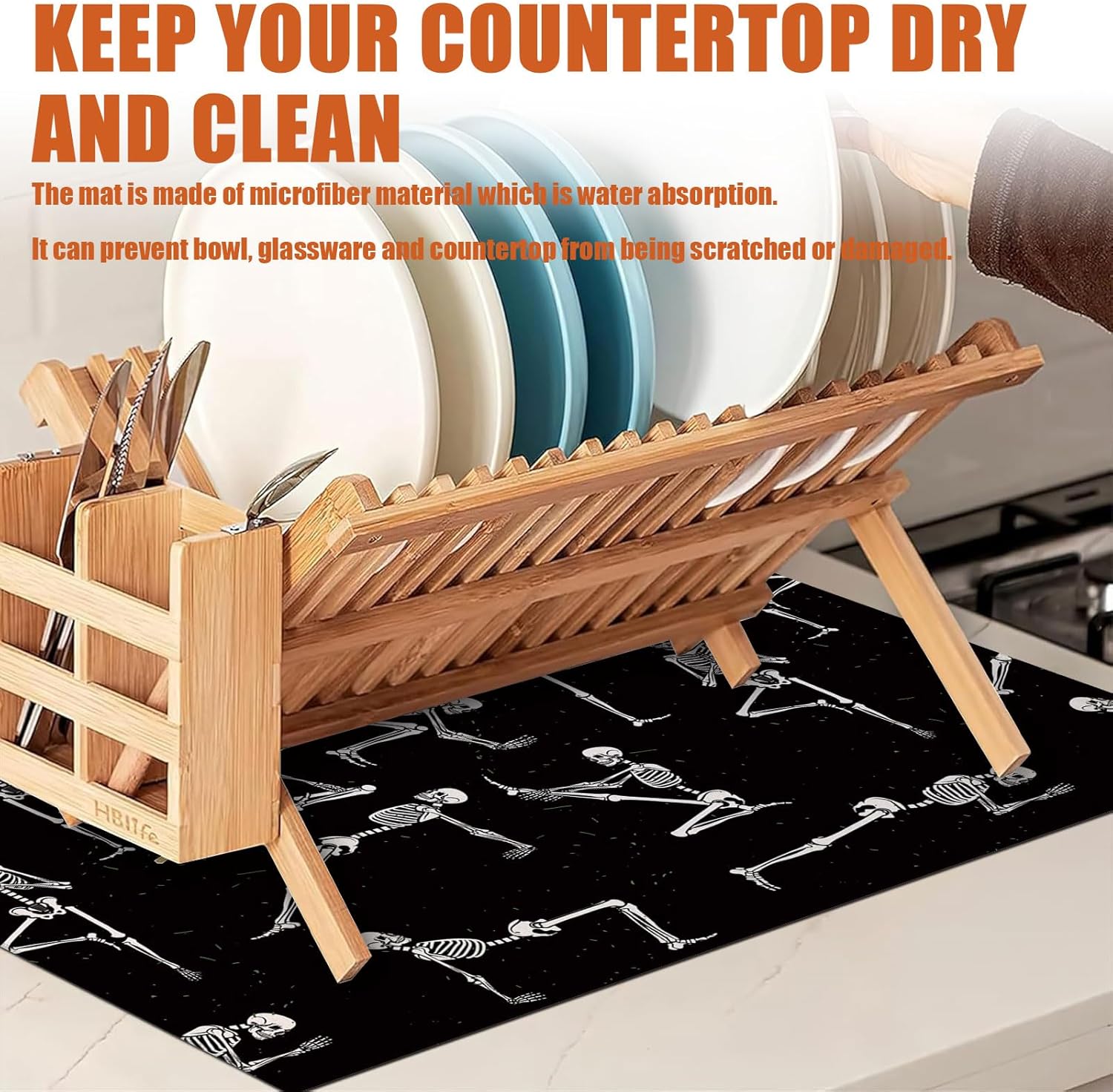 - 【Easy to Clean】The utensil drying mat can be cleaned by hand or machine to remove stains, the kitchen utensil drying mat to dry quickly without a machine. HD printed suede has excellent color lock, does not fade and can be reused many times.