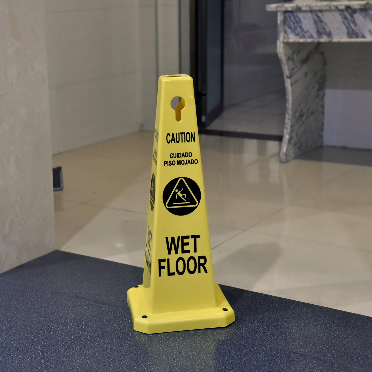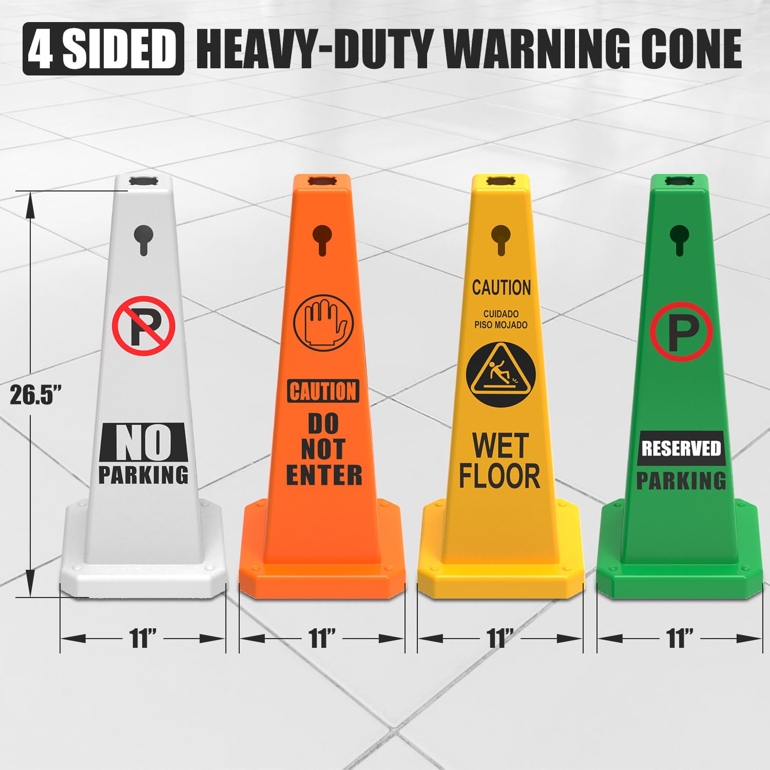 Plastic Traffic Cones, 4-Sided Message Cones, Road Safety Parking Cones, Standing Traffic Warning Signs for Cleaning Area, Garage, No Entry (8, Caution Wet Floor, Large)