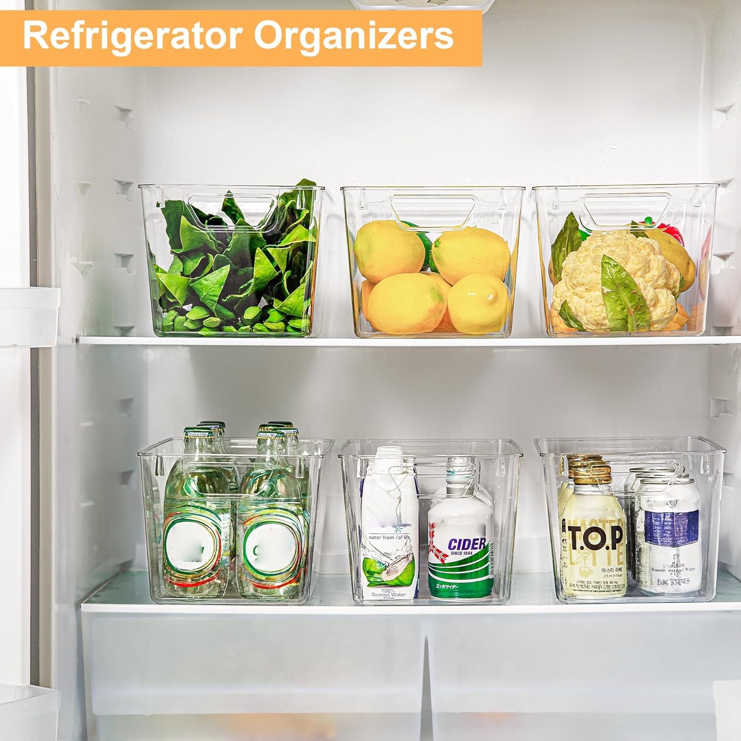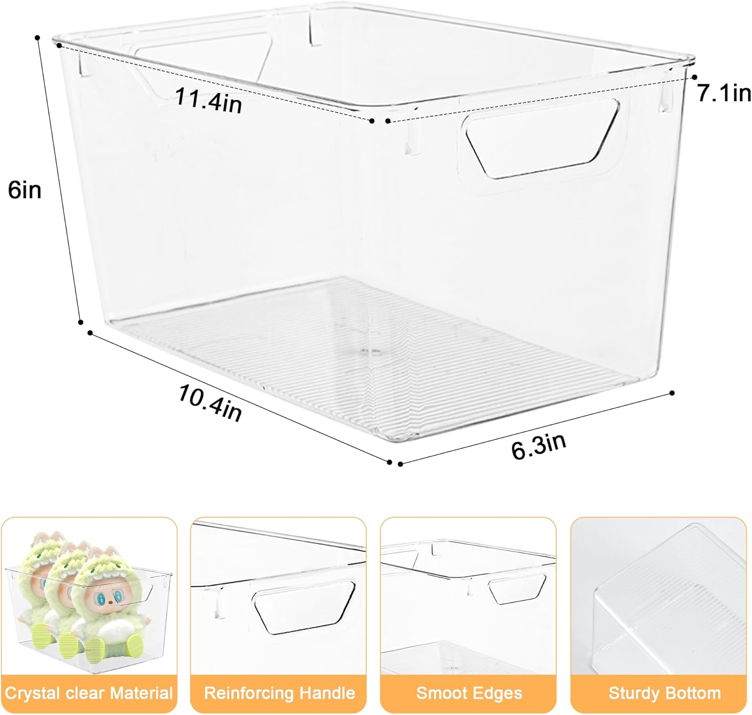 - Multipurpose Organizers:Set of 6 clear storage bins (11.4"L x 7.1"W x 5.9"H) perfect for pantry, fridge, cabinet, or bathroom,Ideal for food, snacks,condiments,bottled beers or office supplies