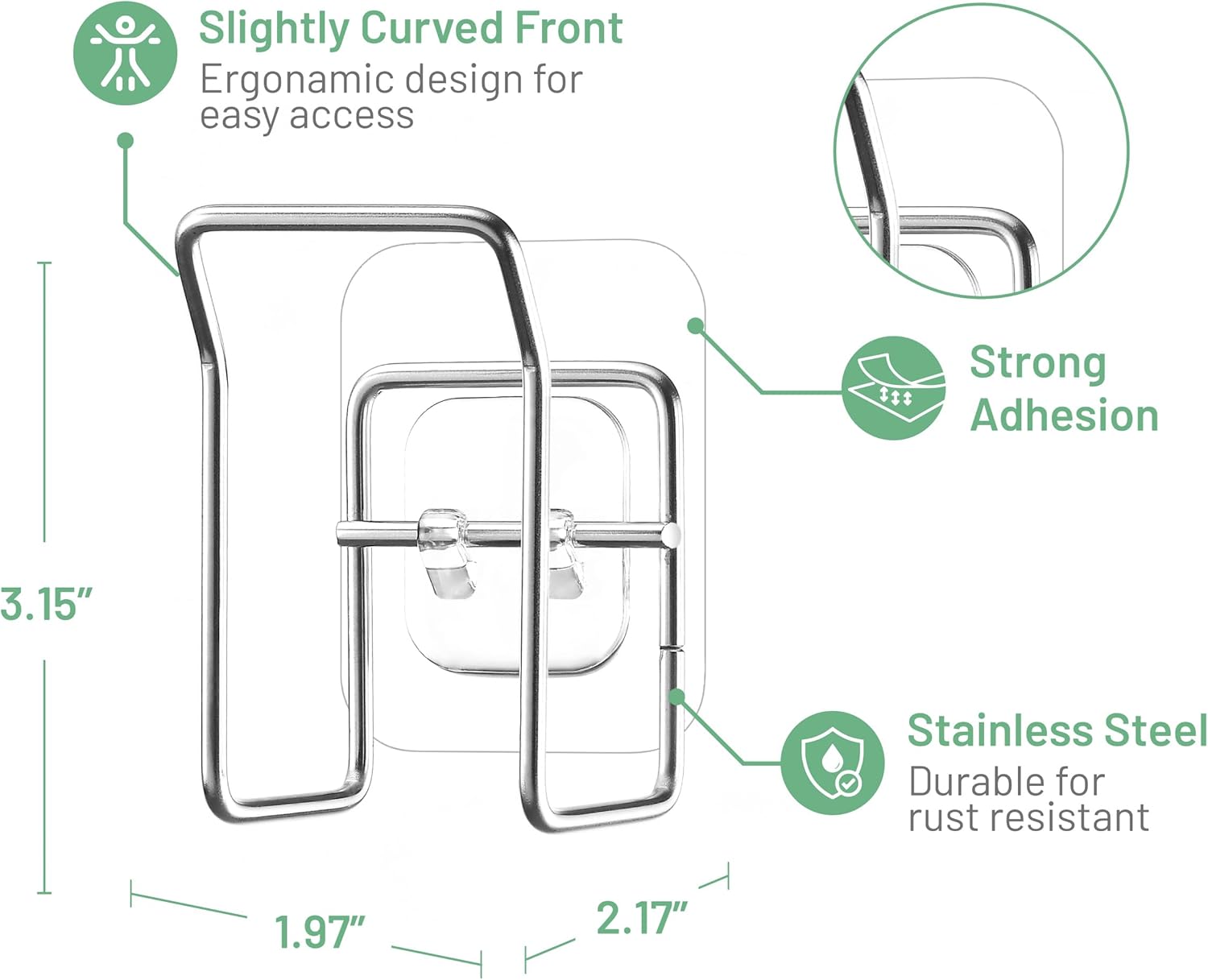 - Strong Adhesive Hold – Features advanced adhesive that withstands water and soap; holds firmly without slipping or falling during everyday use.