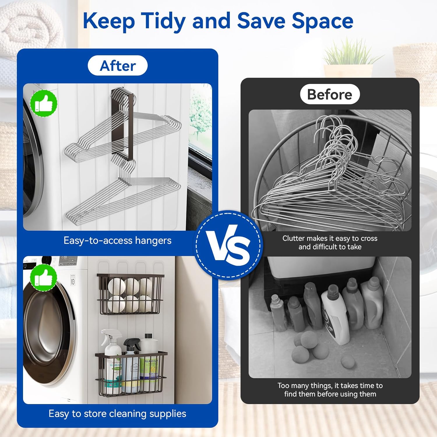 - Durable and Simple: The back is made of strong magnets and high-quality glue, and the magnetic strips will not fall off easily. The drying ball holder and hanger holder are made of high-quality metal materials with smooth paint, durable and rust-proof. Add a pleasant look to your laundry room and say goodbye to monotony.
