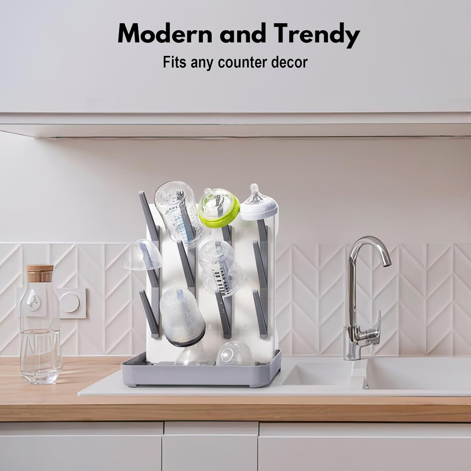 Space Saving Vertical Bottle Drying Rack, Large Countertop Baby Bottle Drying Rack Holder for Baby Bottles and Pump Parts, Blue
