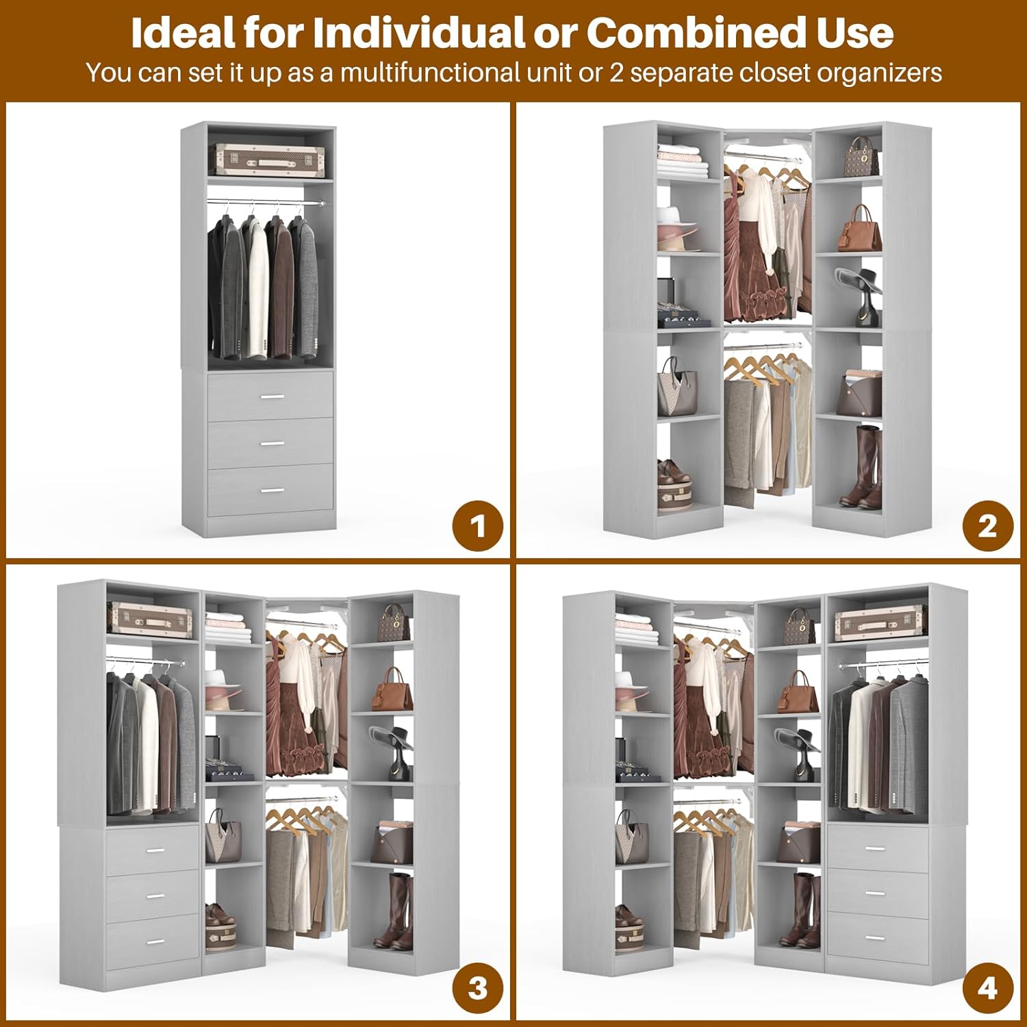 - DIY Customize Your Dream Walk-in Closet: Our closet systems put the design in your hands, allowing you to DIY to your liking. You have the flexibility to mix and match different modules based on room size, personal style and storage requirements to create an dreamful L- or U-shaped walk-in closet.