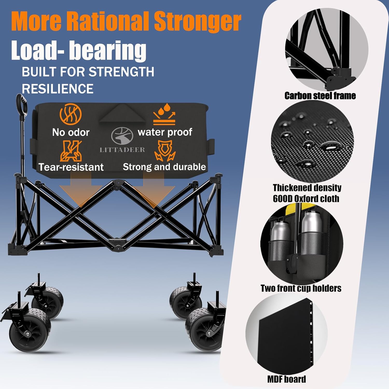 - Spacious/Versatile Storage:Littadeer folding wagon, The unfolded size is 36.6"L x 20.9"W x23.6"H, with a large storage space of 160L, providing ample space for all your equipment Adopting a unique folding design, the folding size is 13"L x 8"W x 28"H , making it easy to transport and store. Whether you are transporting groceries, sports equipment, or camping supplies, this wonderful folding cart is your preferred solution