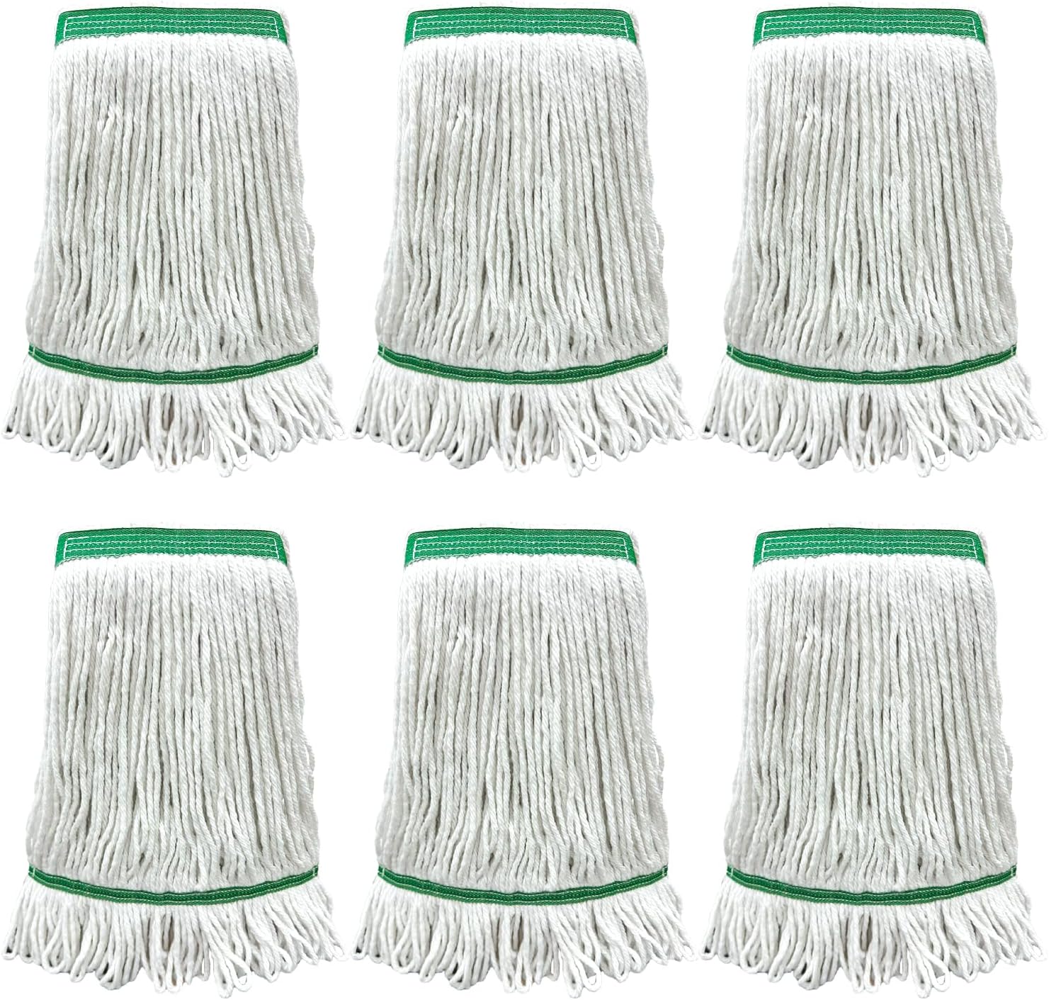 6 Pack Commercial Heavy Duty Mop Heads Heavy Cotton Looped End String Mop Head for Home Industrial Commercial Floor Cleaning Mop Head Replacement(White, Green)