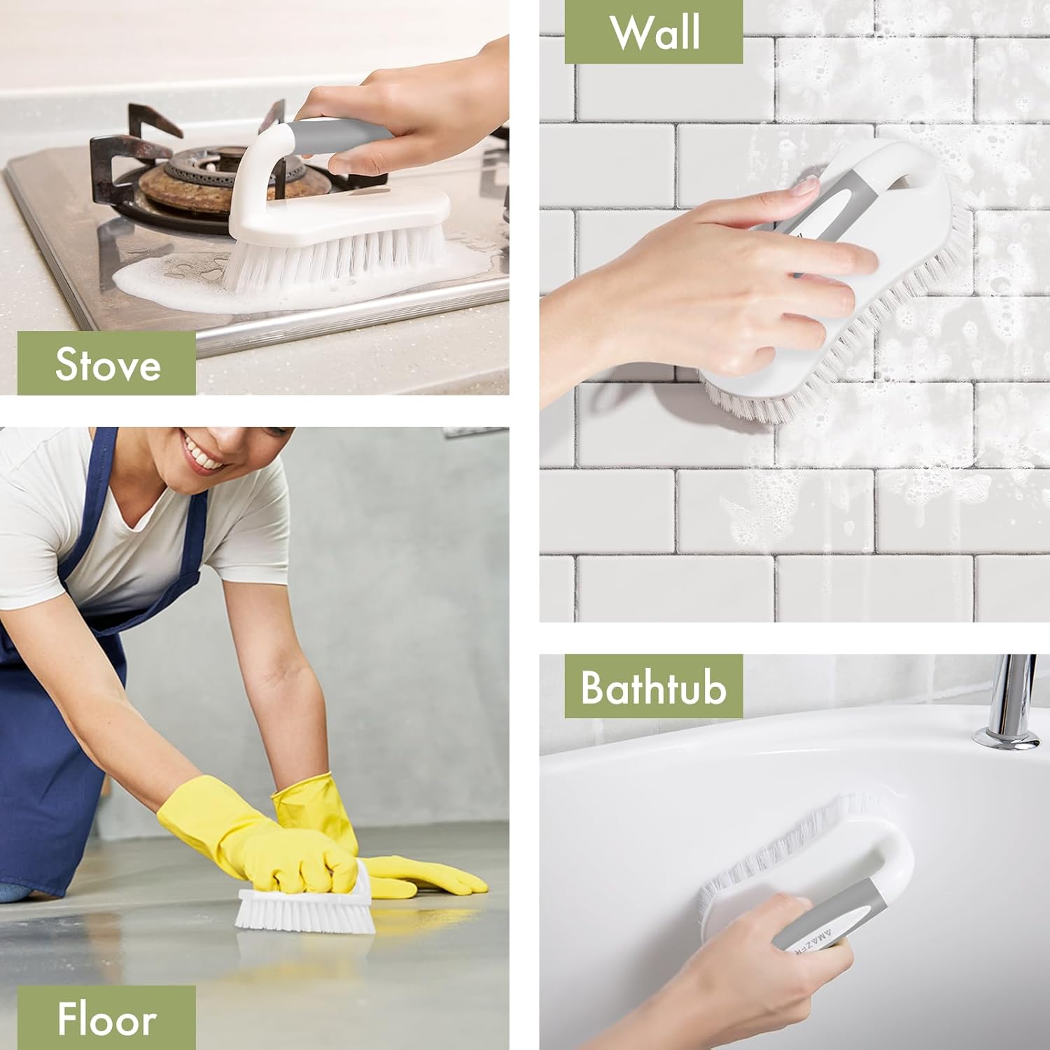 - Upgraded colors : Classic grey and grey are more popular, and the handle of the scrub brush is more anti-dirt. Stiff white bristles firmly attached to scrubbing brush head, so Amazer brush cleaner will stand up to the test of tim