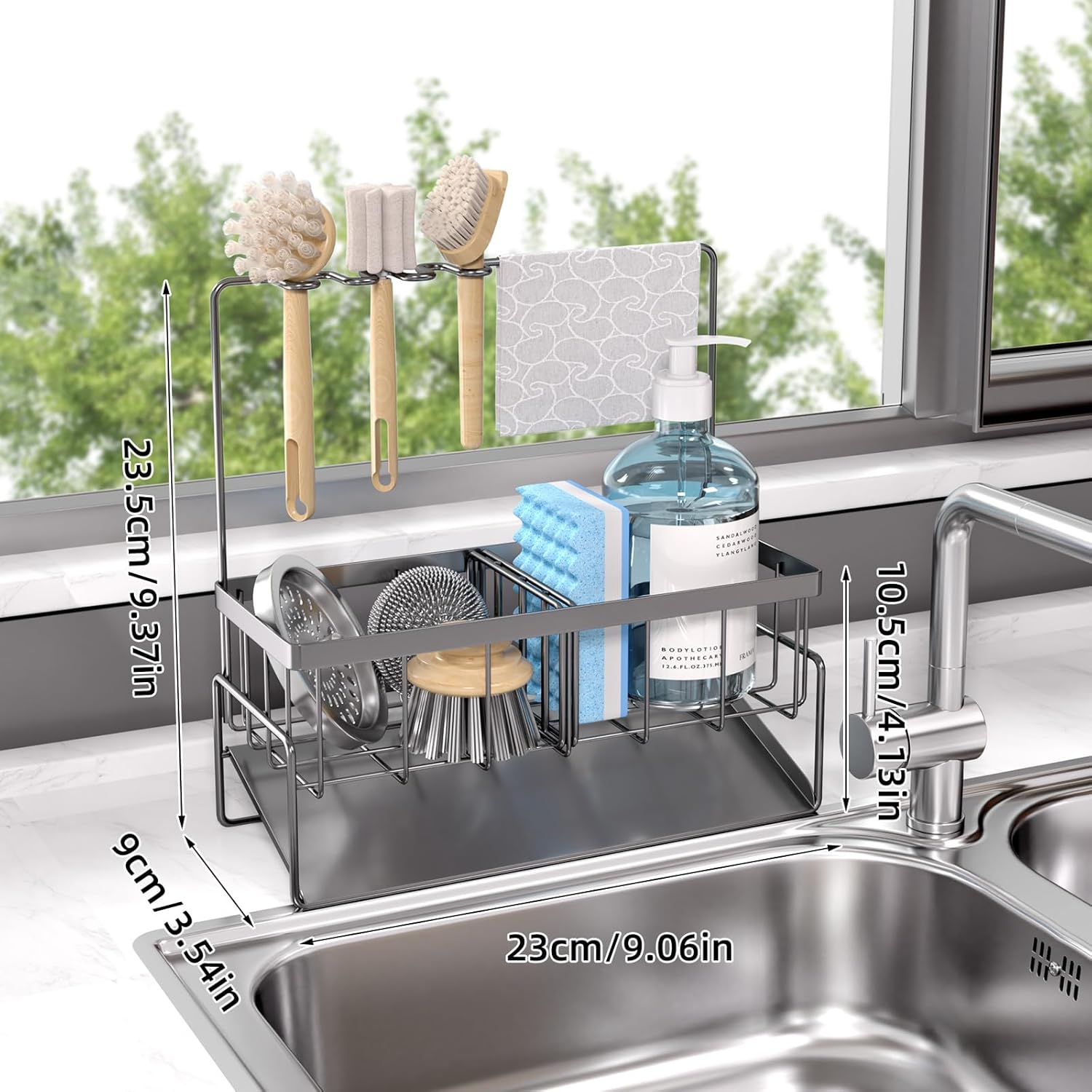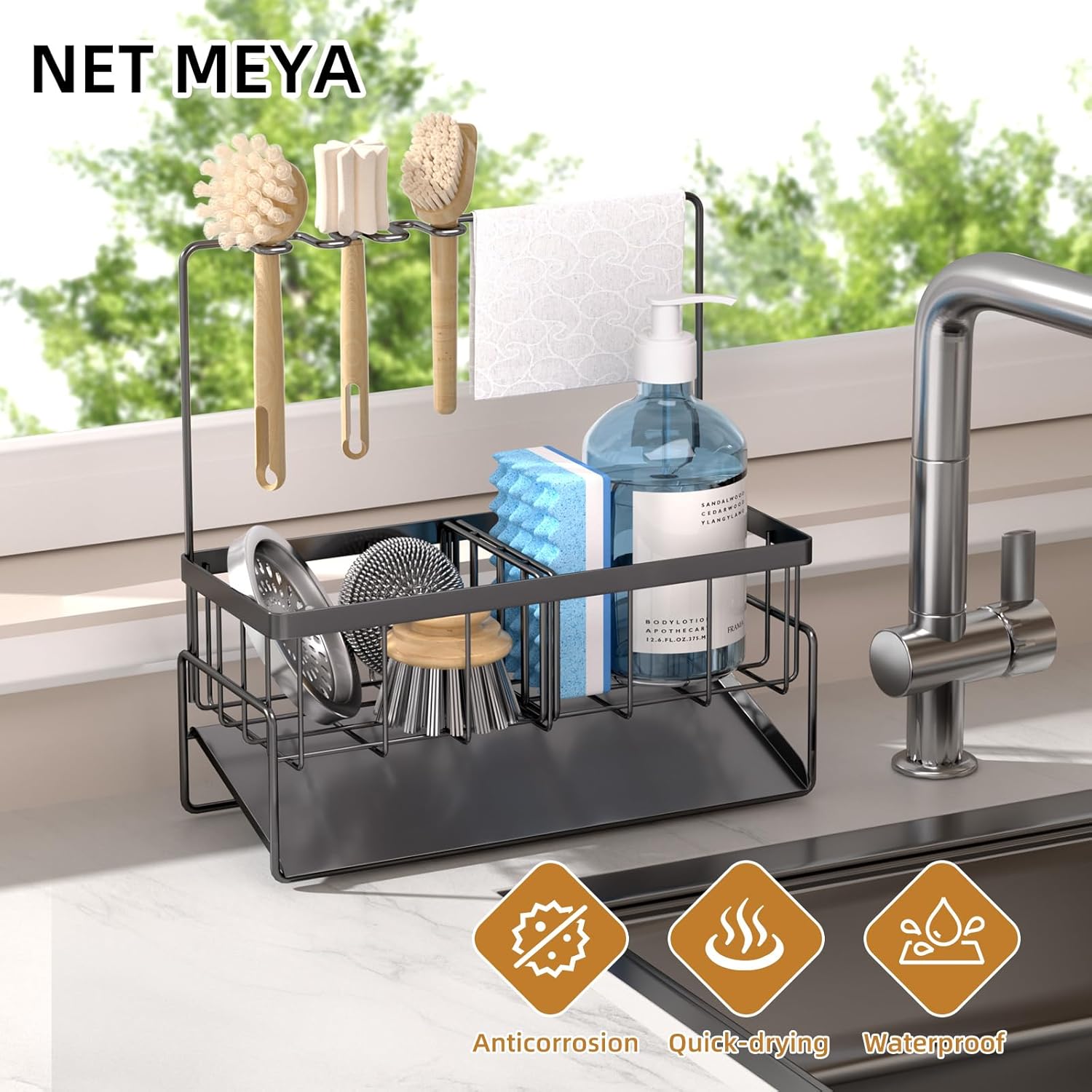 NET MEYA Sponge Holder for Kitchen Sink,Stainless Steel Sink Caddy with Dish Brush Holder,Kitchen Sink Organizer Countertop Sink Holder,Dish Soap Holder for Kitchen Sink Organizer