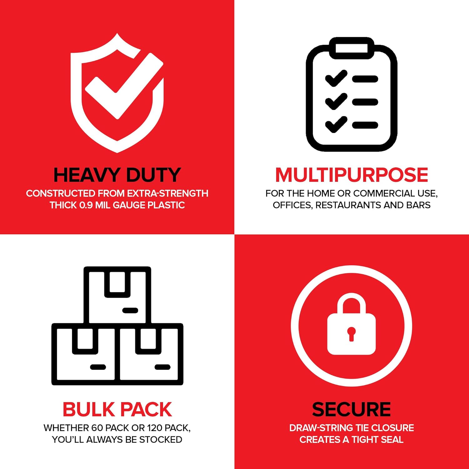 - Easy Tie Closure: Designed for quick use, these bags can be tied securely at the top to keep trash contained and easy to carry.
