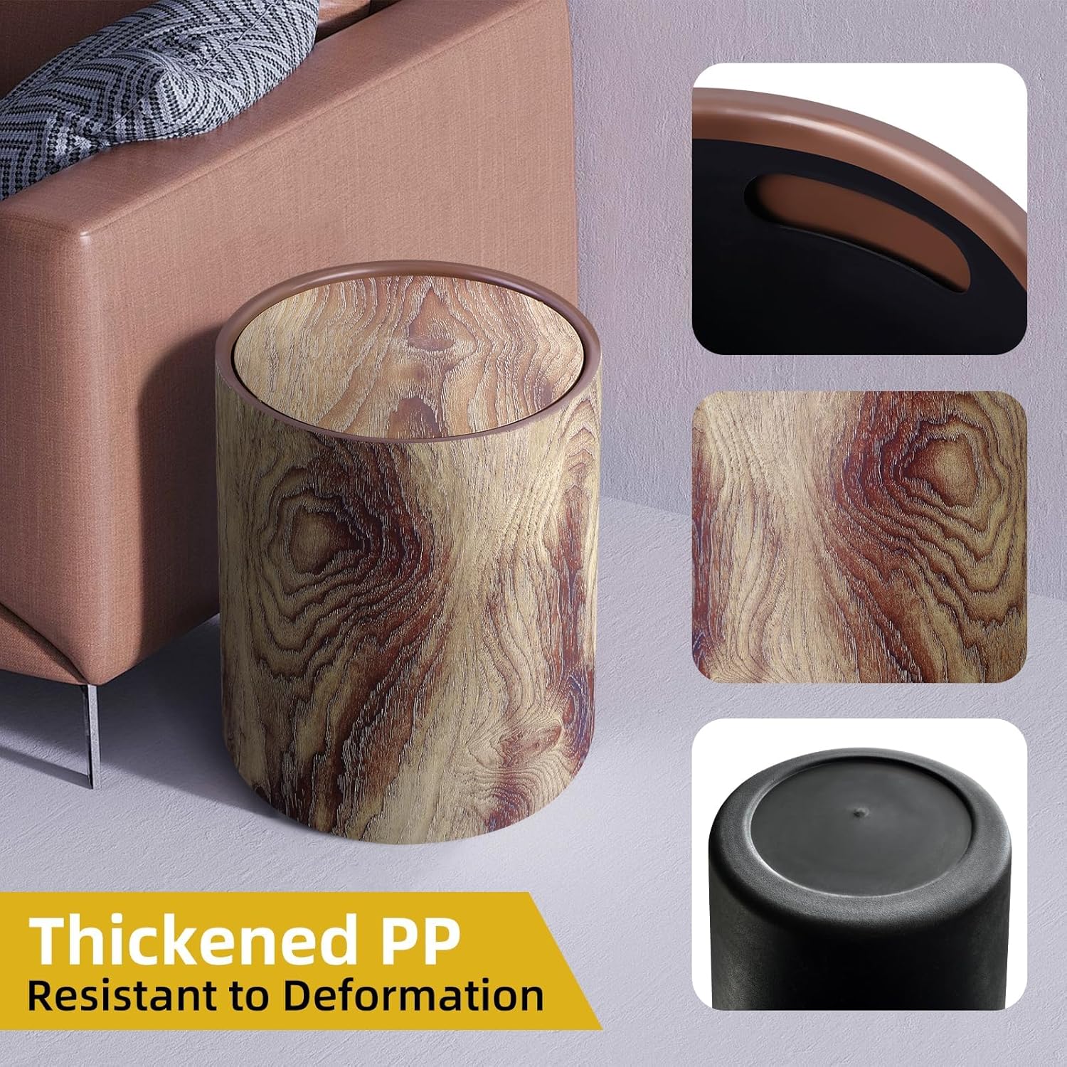- Durable & Easy to Clean - Thickened PP rubbish bin, resistant to deformation and easy to clean.