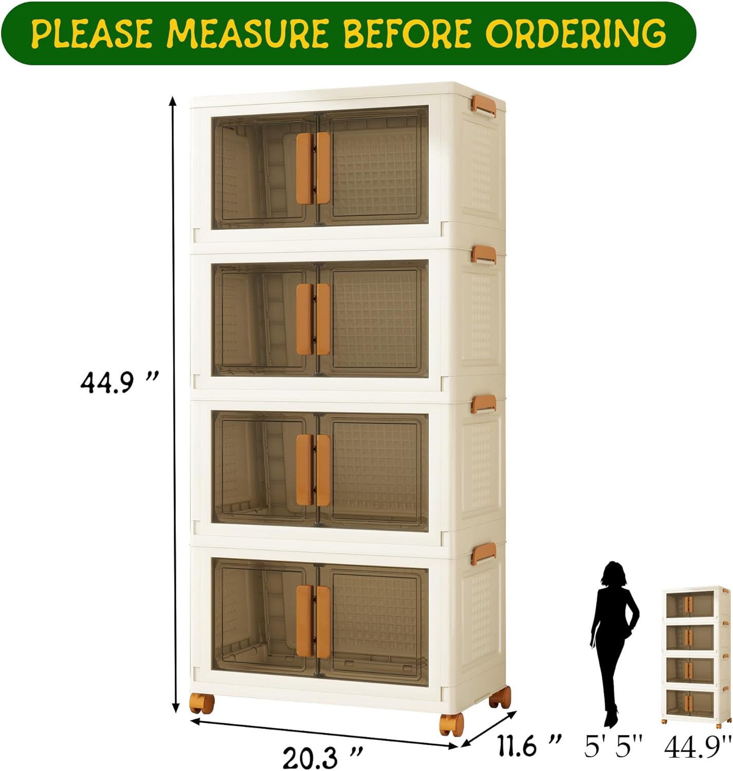 4 Tier Stackable Plastic Storage Bins with 1 Lid 35 QT/Tier, Collapsible Plastic Box Storage Bin with Wheels, Home Containers Boxes Closet Organizers for Living Room, Office, Dorm