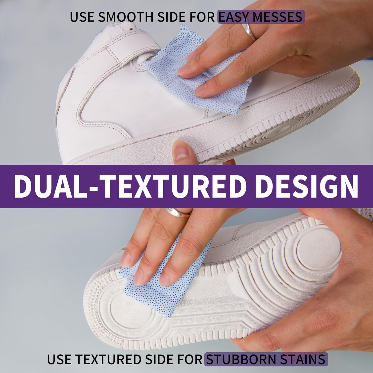 - Innovative Sneaker Care: At Henviro, we believe premium sneakers deserve premium care.The advanced dual-texture cleaning wipes go beyond the basics—crafted with raised scrubbing points for targeted stain removal and a smooth side for effortless surface cleaning. This innovative design delivers a powerful, waterless clean that lifts dirt, mud, grass, and grime with precision—no drying time, no mess.