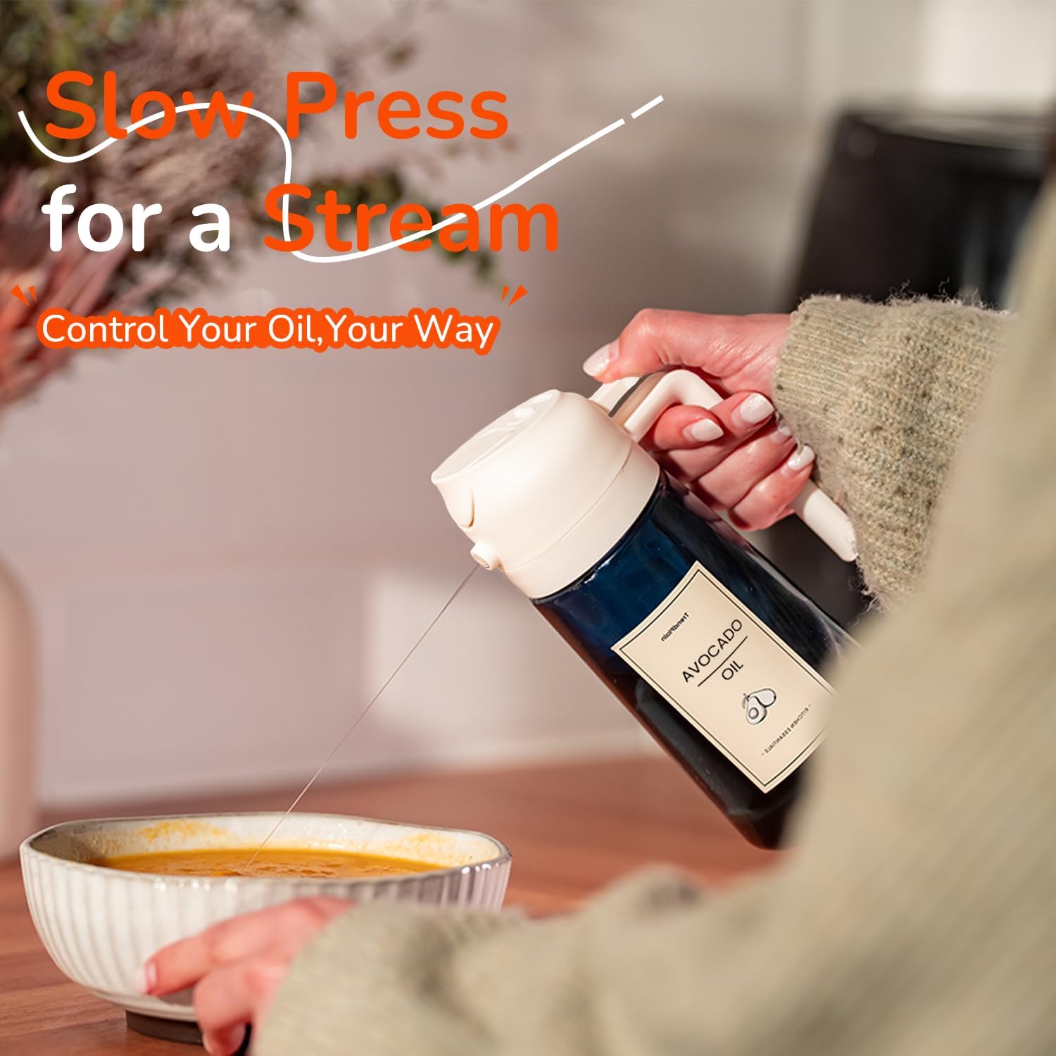 - Dual-Function: This 2 in 1 oil dispenser and oil sprayer offers both pouring and spraying capabilities, making it a versatile solution for your kitchen needs. Switching between the two functions is effortless, keeping your kitchen tidy and efficient