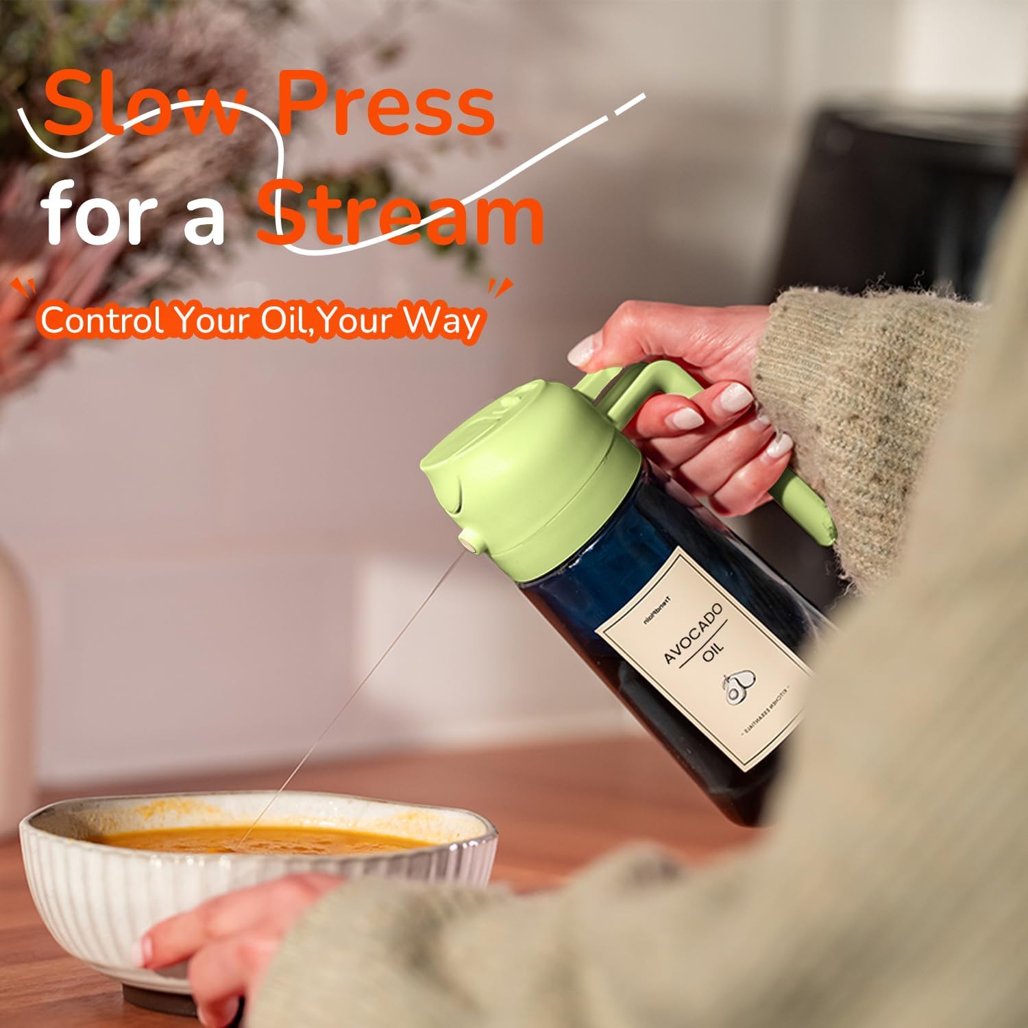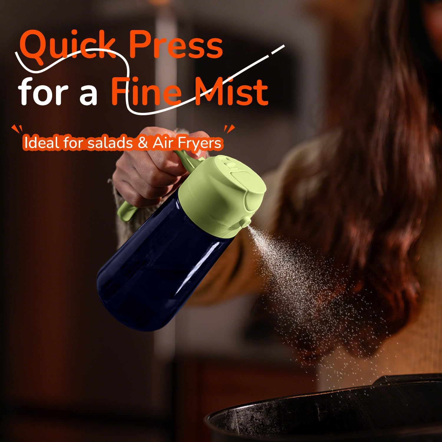 - Innovative Spray Nozzle Design: Offers precise control with a fine mist from quick presses and a steady stream from slow presses. A reliable cooking oil sprayer for all your cooking needs