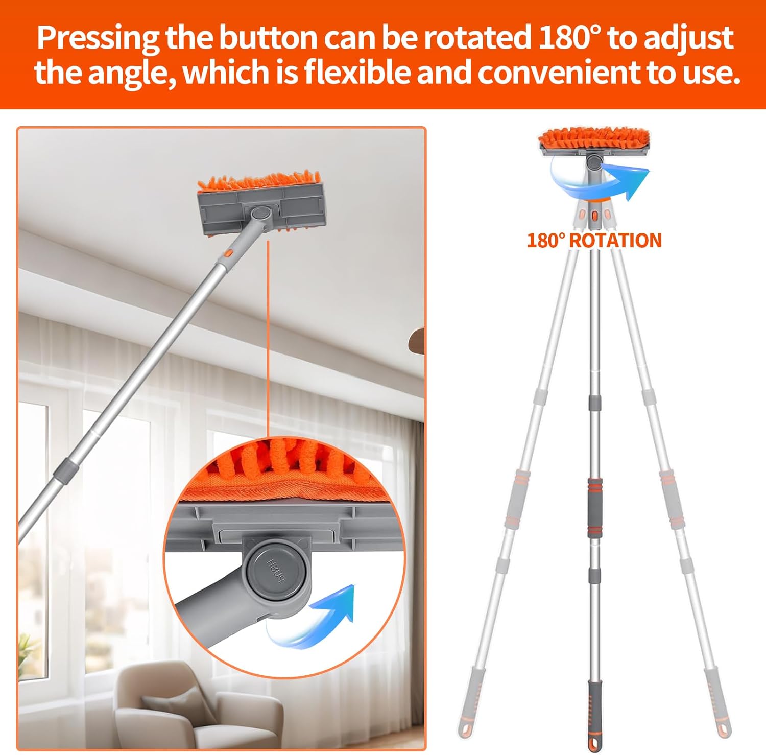 - 【Wall Cleaning Mop for Walls with Long Handle】Use a microfiber mop (orange-colored) to remove stains without harming surfaces. Excellent for cleaning washable wallpaper, baseboards, woodwork, doors, wall coverings, and baseboards.
