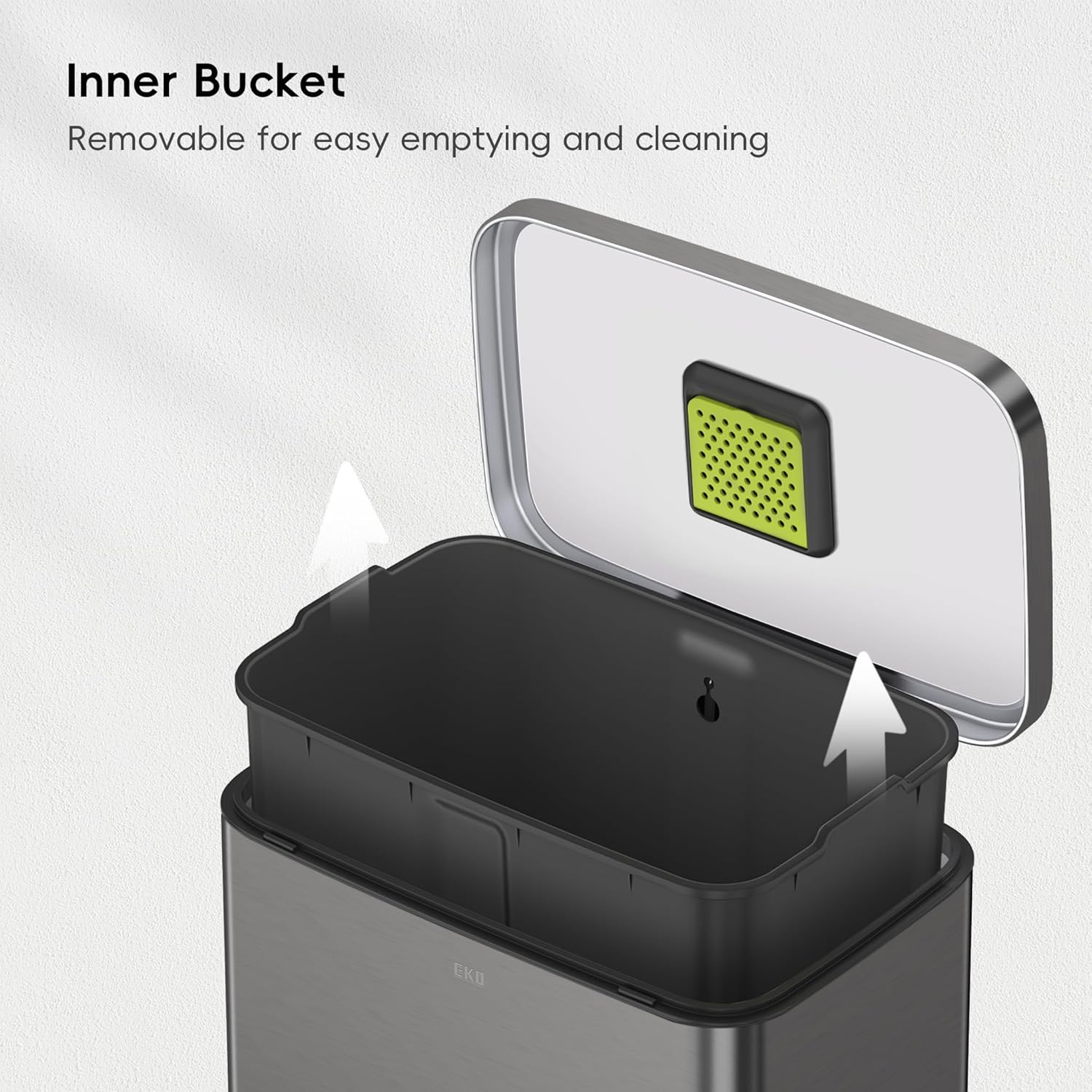 - Elevated Inner Bucket with Handles: The Madison stainless trash can features a raised inner bucket with convenient handles, ensuring swift and hassle-free bag replacement.