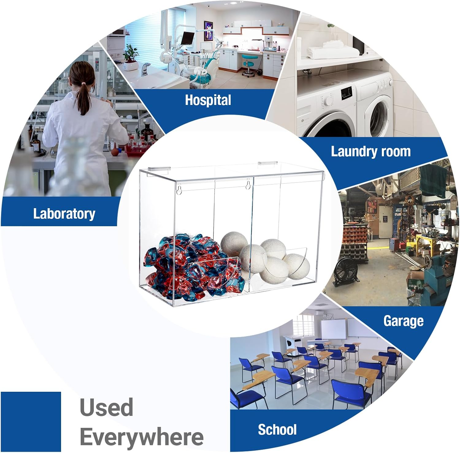 - Hygienic Organization Solution - The glove dispenser features 2 spacious clear acrylic compartments with large front openings for quick access. Ideal for gloves, hairnets, shoe covers, earplugs, or medical supplies. Transparent container ensure visibility and hygienic storage