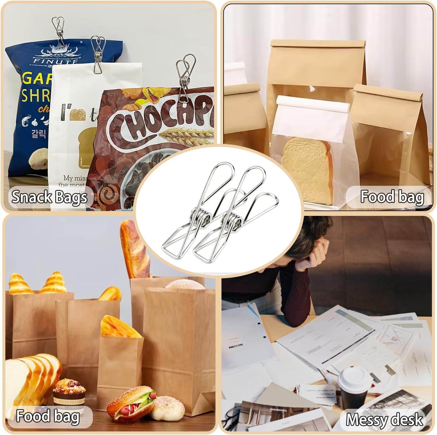100 Pack Metal Clothes Pegs, Stainless Steel Utility Clips for Laundry, Washing Line, Snack Bags, Paper Files