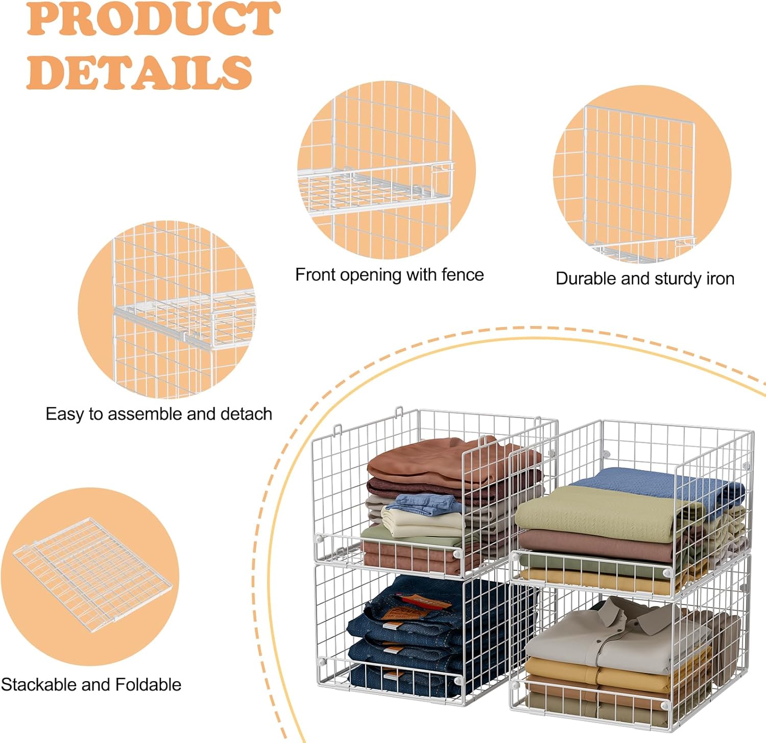 - 【Sturdy Iron Mesh】Made of premium iron mesh,these closet storage bins are sturdy,durable,breathable,visible,no smell and washable.Would not bend or damage like plastic or cloth storage baskets. You can count on it is strong enough and has a good craft.