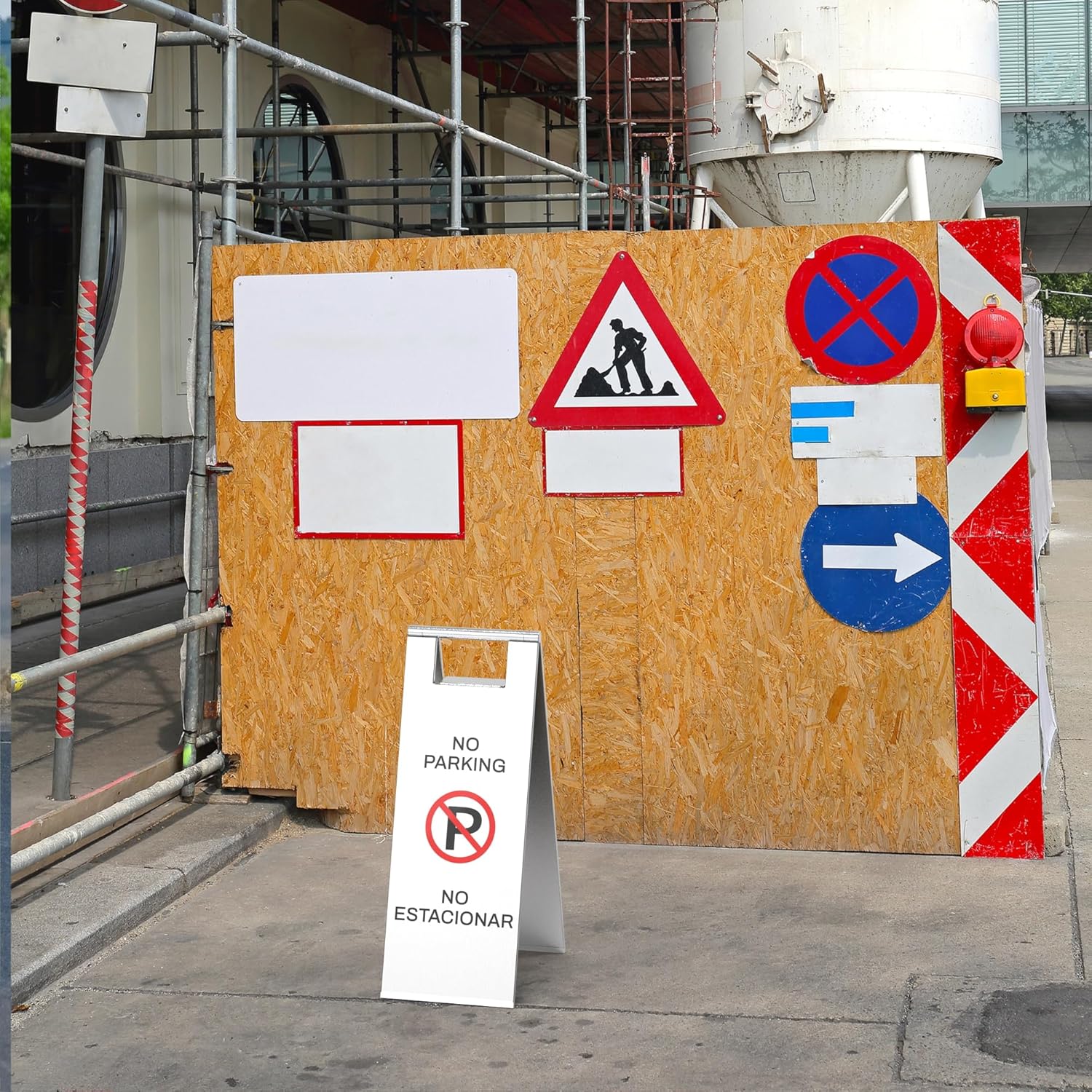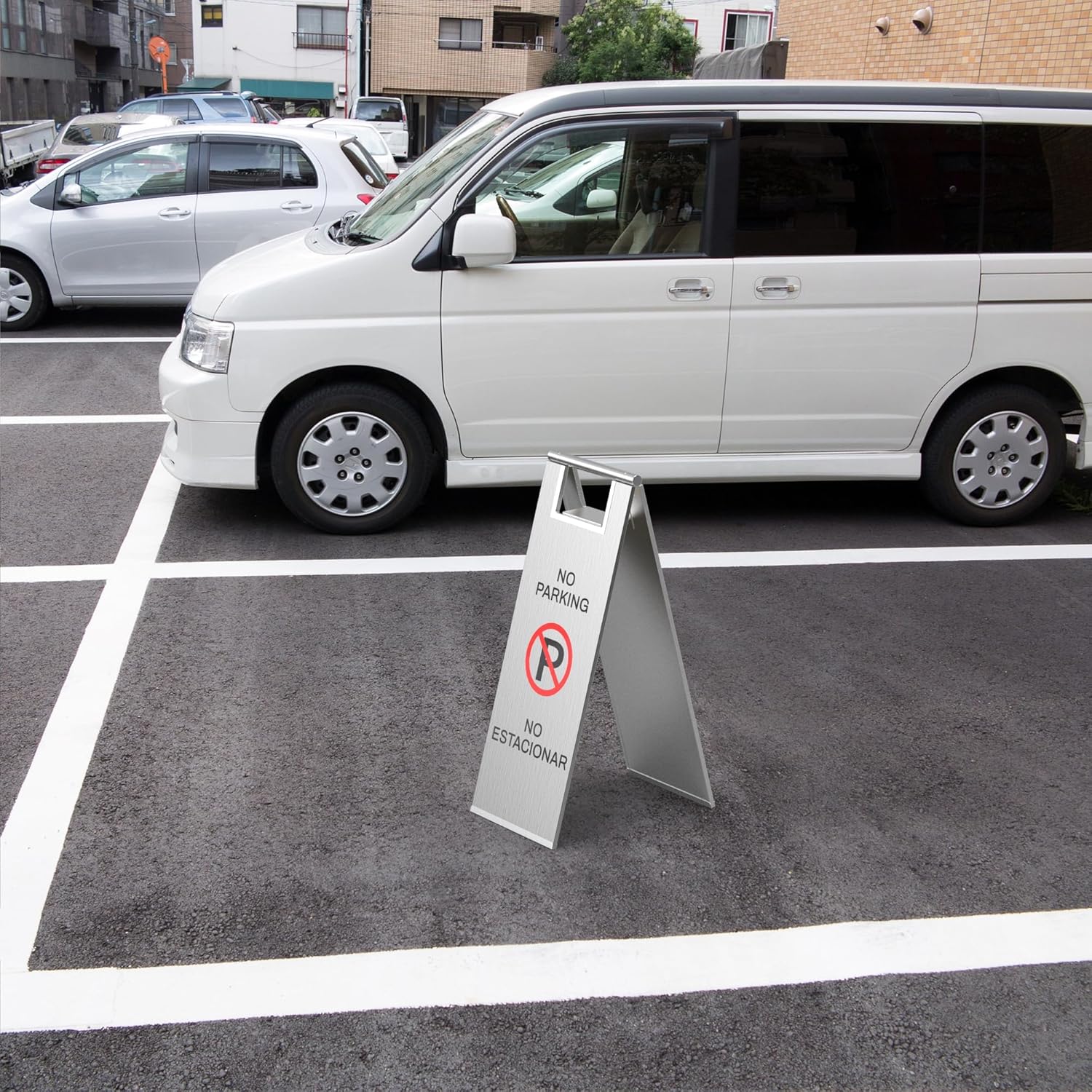 Stainless Steel No Parking Sign Portable Foldable Handle 2-Pack (Silver)