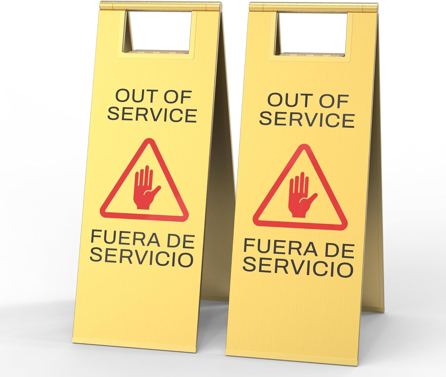 Stainless Steel Out of Service Sign Portable Foldable Sign 2-Pack (Gold)