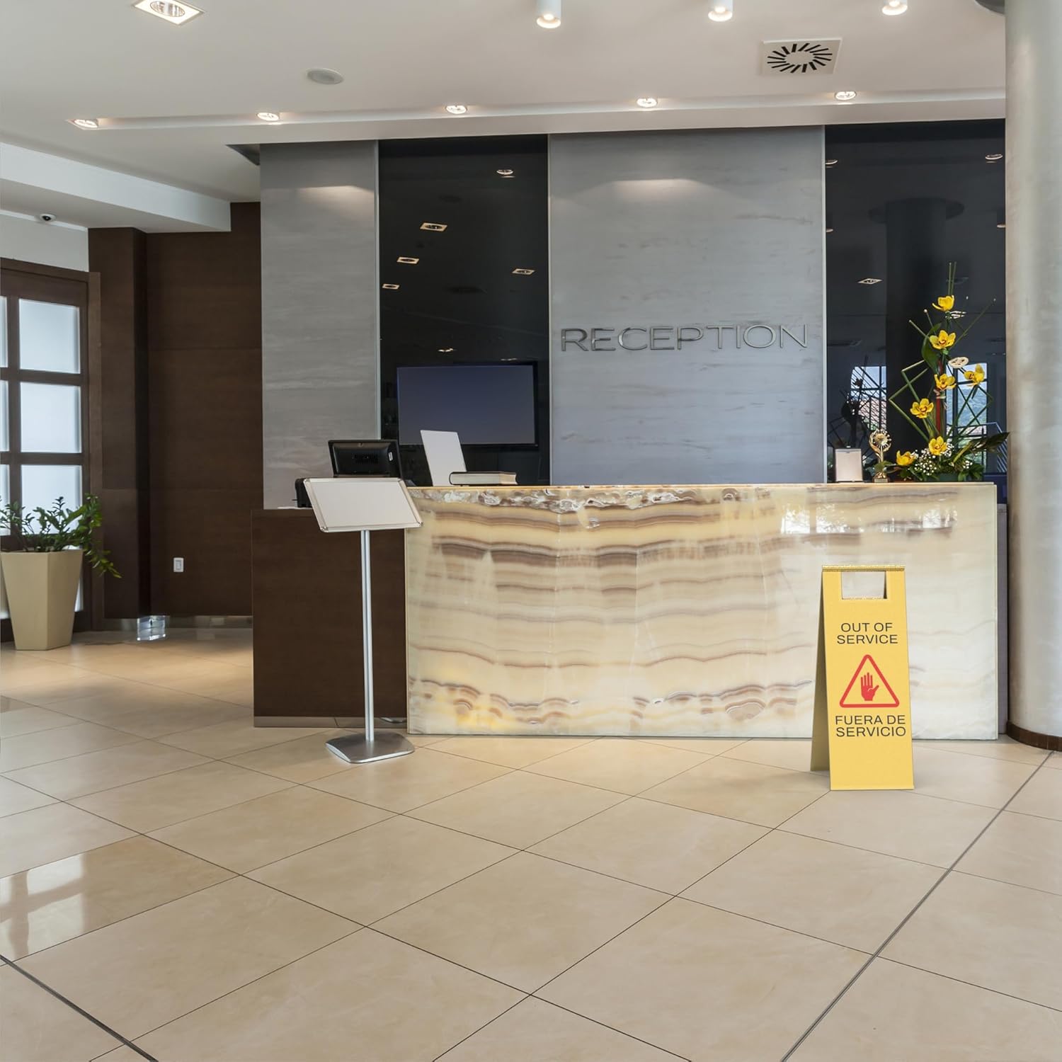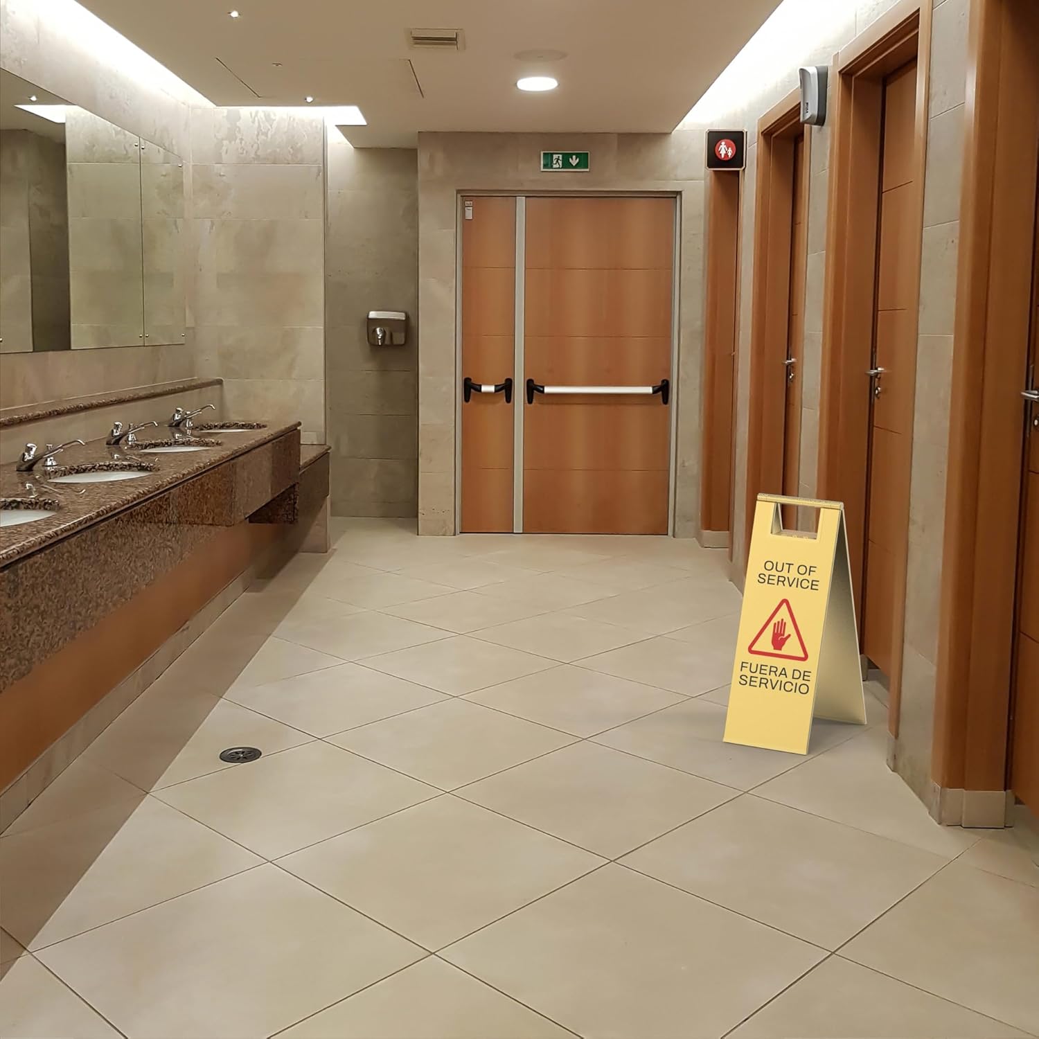 - Double-Sided Bilingual Warning – Boosts Safety Awareness Features clear “Out of Service” and “FUERA DE SERVICIO” text on both sides, along with a universal falling icon. Provides instant visual alerts to help prevent slip-and-fall incidents in multilingual environments