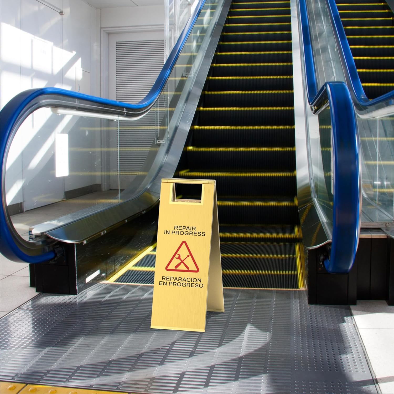 Stainless Steel Repair In Progress Sign Portable Foldable Sign 2-Pack (Gold)