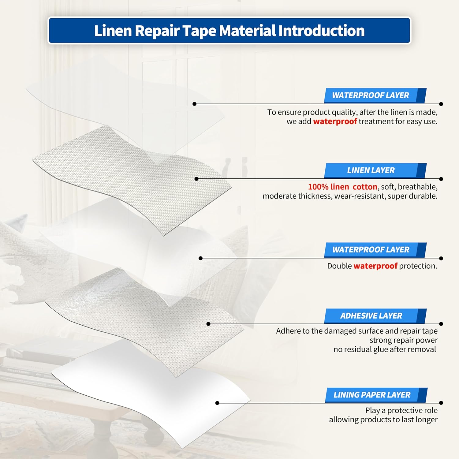 - Strong Self-Adhesive: The craftsmanship of the linen repair kit has been upgraded, using strong adhesive to ensure excellent bonding effect, specially developed for repairing various fabric products, ensuring that the repaired area can be used for a long time without easily falling off.