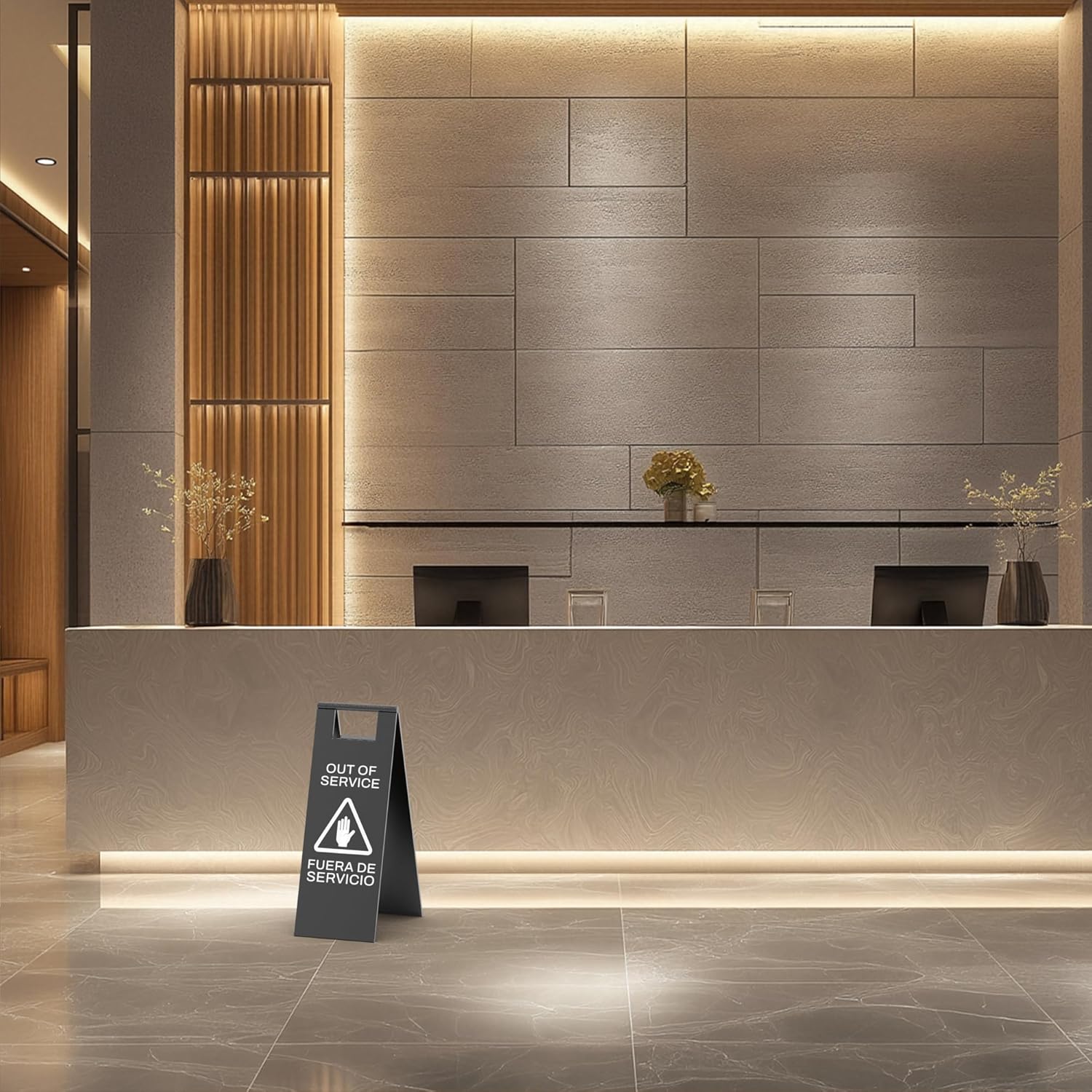 - Double-Sided Bilingual Warning – Boosts Safety Awareness Features clear “Out of Service” and “FUERA DE SERVICIO” text on both sides, along with a universal falling icon. Provides instant visual alerts to help prevent slip-and-fall incidents in multilingual environments