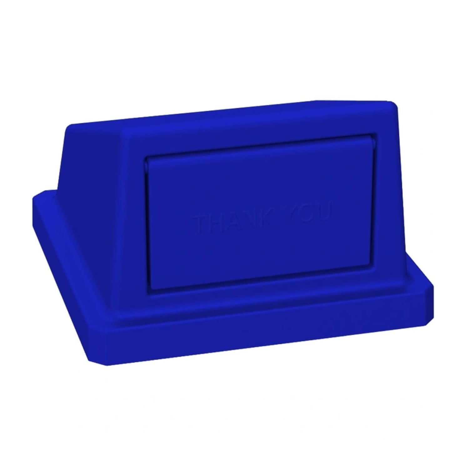 32 Gallon Square Slatted 100% Recycled Plastic Heavy-Duty Commercial Outdoor or Indoor Trash Can with Push Top Lid | Great for Schools and Businesses - Blue