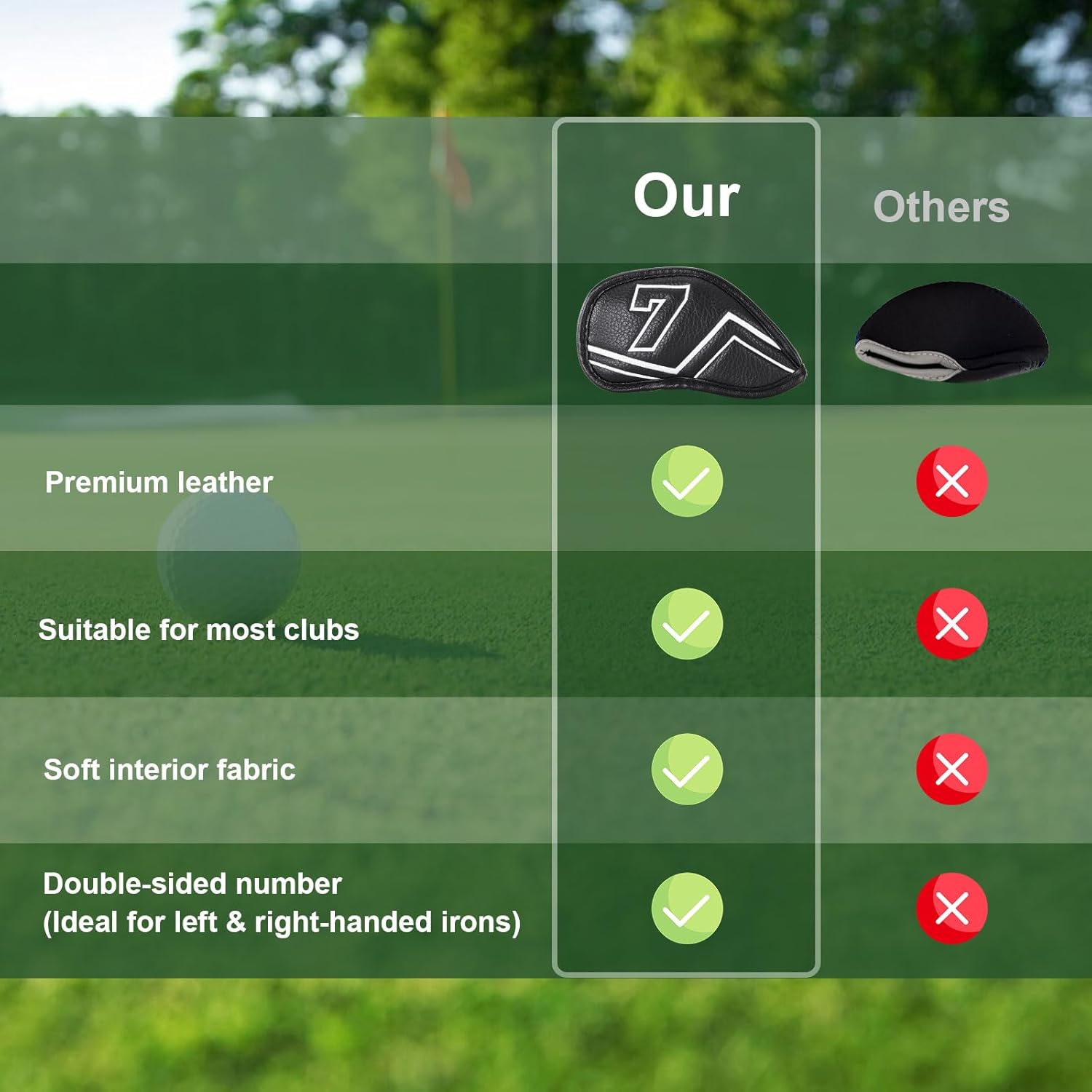 - 【Set of 11 to Fit Most Golf Clubs】This golf head cover set includes 11 head covers designed to fit most standard golf clubs. These magnetic leather golf iron head covers can provide the protection and organisation your clubs need.