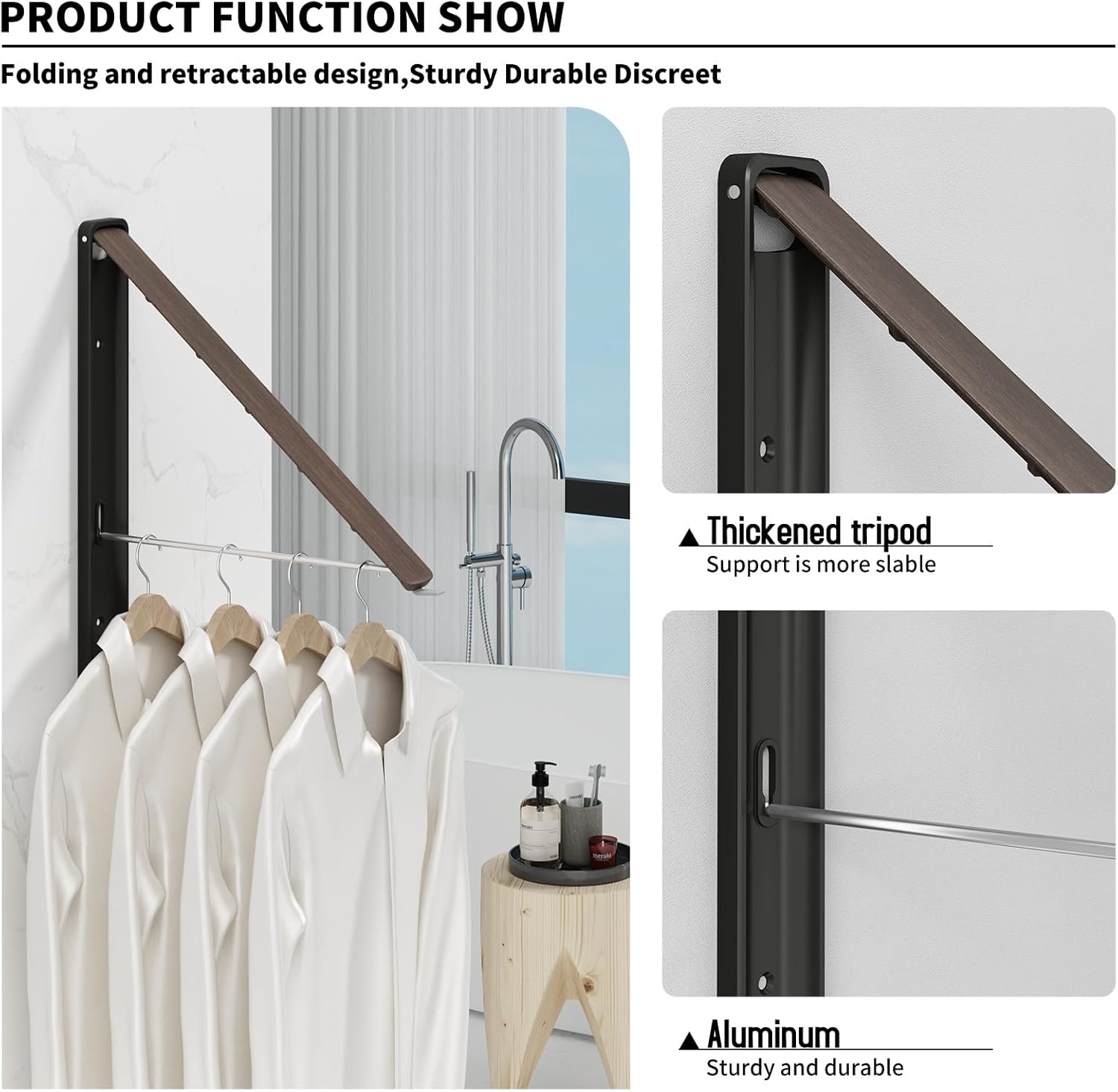 - 【Multifunctional Folding Clothes Rack】The retractable drying rack can be opened from the wall. Our clothes racks are specially designed to fold when not in use. The drop down drying rod creates instant hanging space for guest rooms, dorm rooms, laundry rooms, offices or break rooms