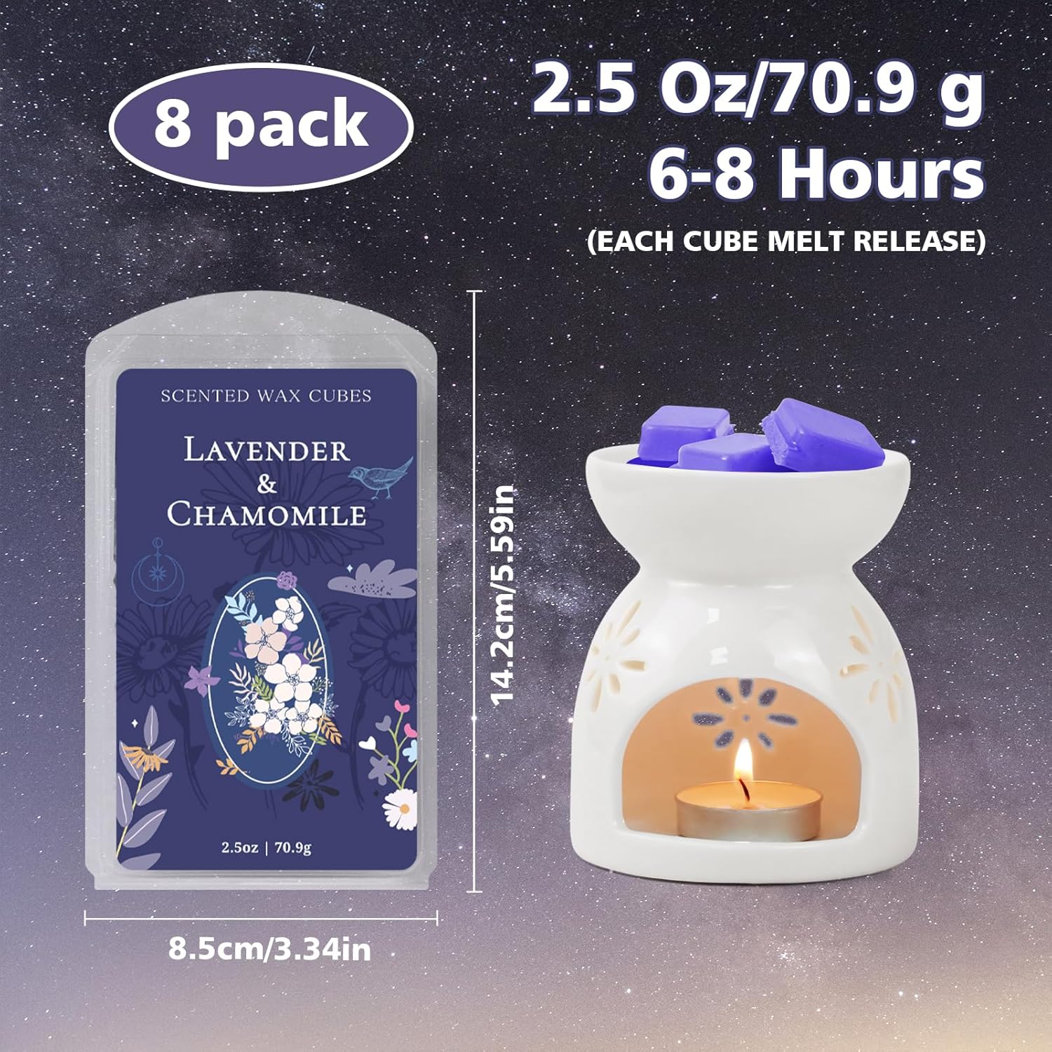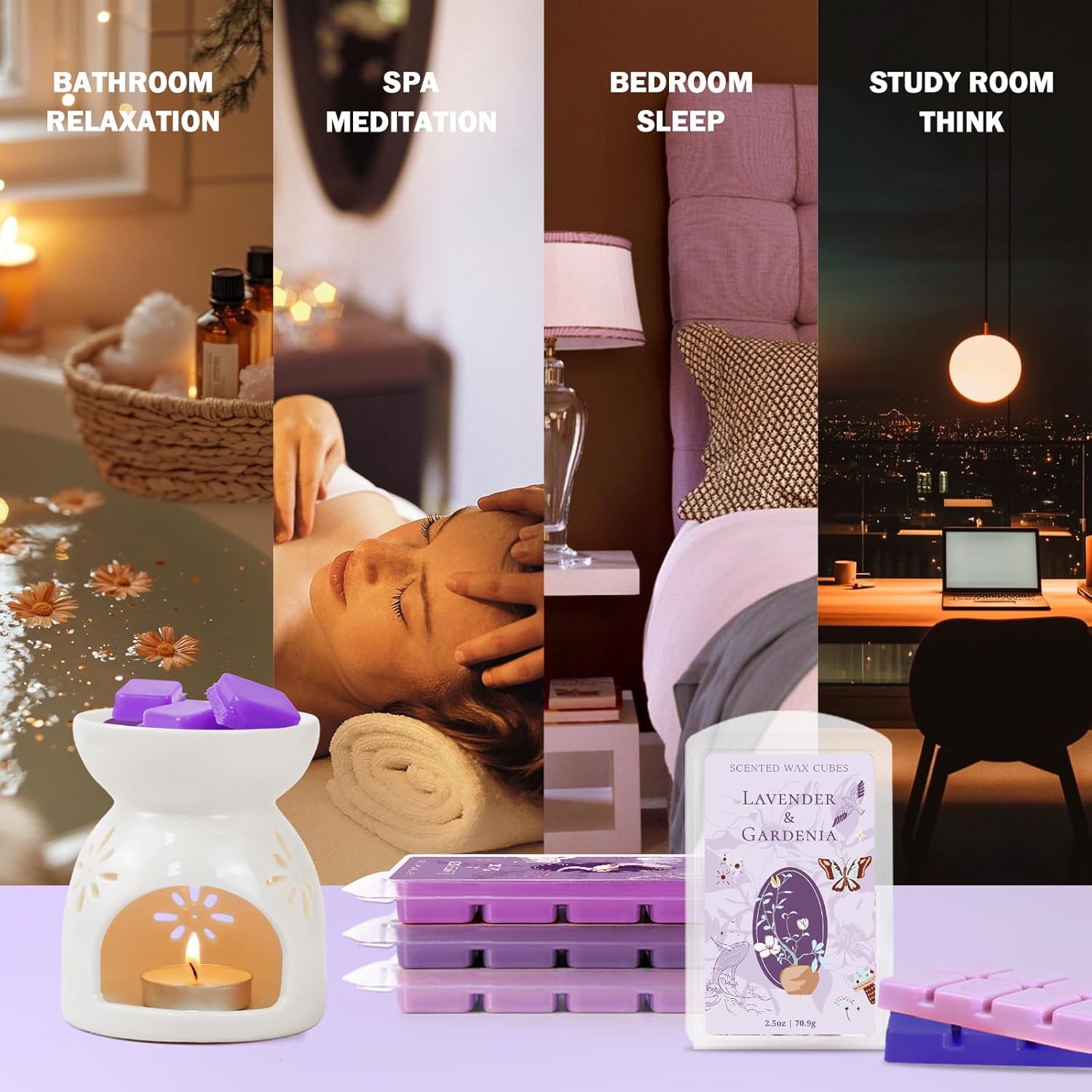 - Better Sleep: lavender-scented wax block emits a calming and soothing lavender fragrance, designed to relieve stress and relax the mind. Its natural aroma promotes better sleep and creates a peaceful resting environment, perfect for use in bedrooms or relaxation spaces.