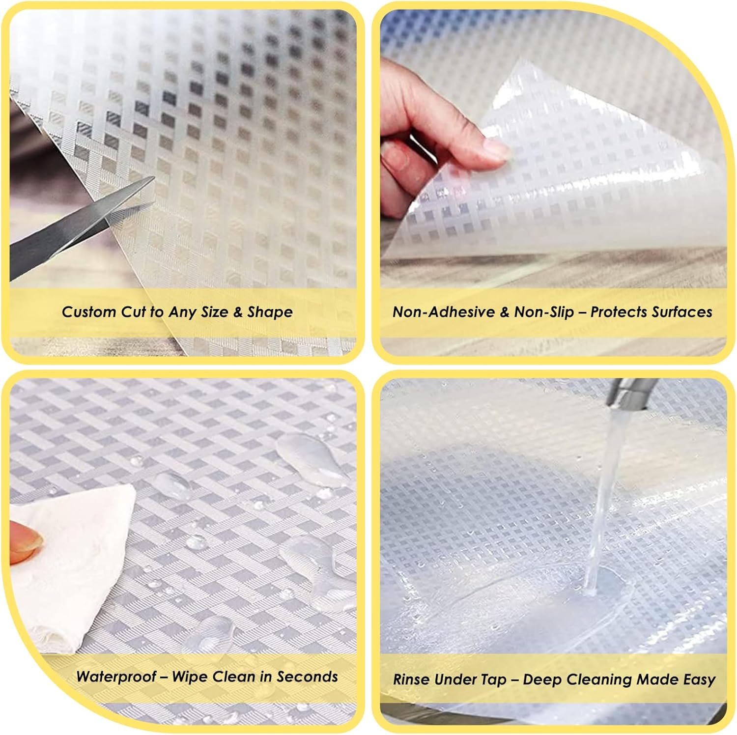 - ✅ Waterproof Drawer Liner – Anti-Slip & Easy to Clean! Secure Grip + Effortless Maintenance – The textured shelf and drawer liner prevents items from sliding, even when opening or closing. Waterproof surface wipes clean instantly with a cloth or rinses under water – no stains, no fuss. Perfect for shelf liners for cabinets that stays pristine!