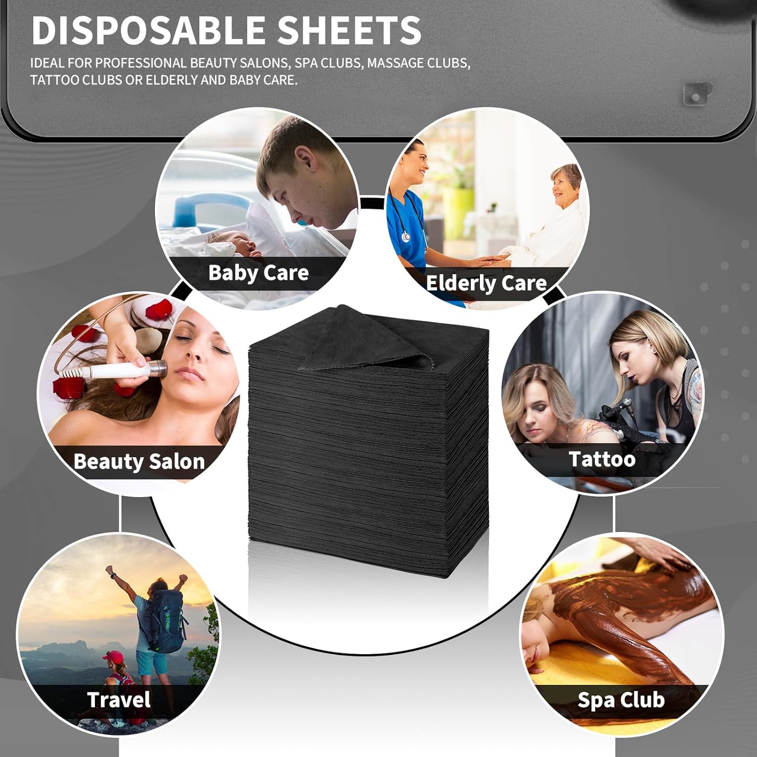Breling 100 Pcs 31.5 x 71 Inch Disposable Bed Sheets Oil-proof PE Film Massage Table Sheets Non-woven Fabric Spa Waterproof Bed Cover Breathable for Beauty Salon Hotels Tattoo Waxing(Black)