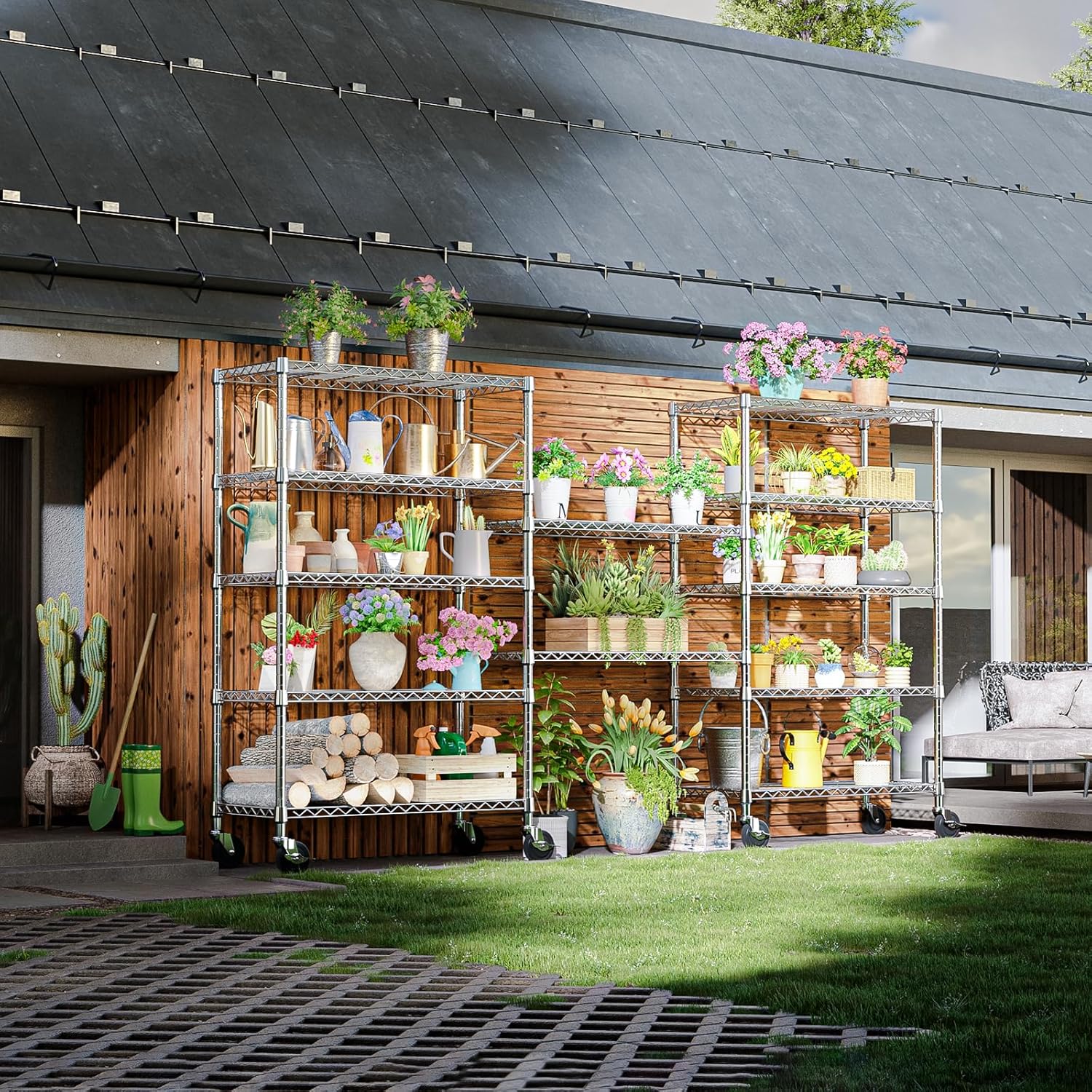 - 【Sturdy Carbon Steel – Built to Last】Crafted from heavy-duty carbon steel and reinforced with thick 22.22mm pipes, the IZEUK 5-tier shelving unit (17.7"" D x 47.2"" W x 76.7"" H) delivers exceptional strength and stability. Each shelf holds up to 350 lbs (on leveling feet) or 120 lbs (on wheels), with a total weight capacity of 1750 lbs on feet / 600 lbs on wheels, making it ideal for both stationary and mobile storage needs.