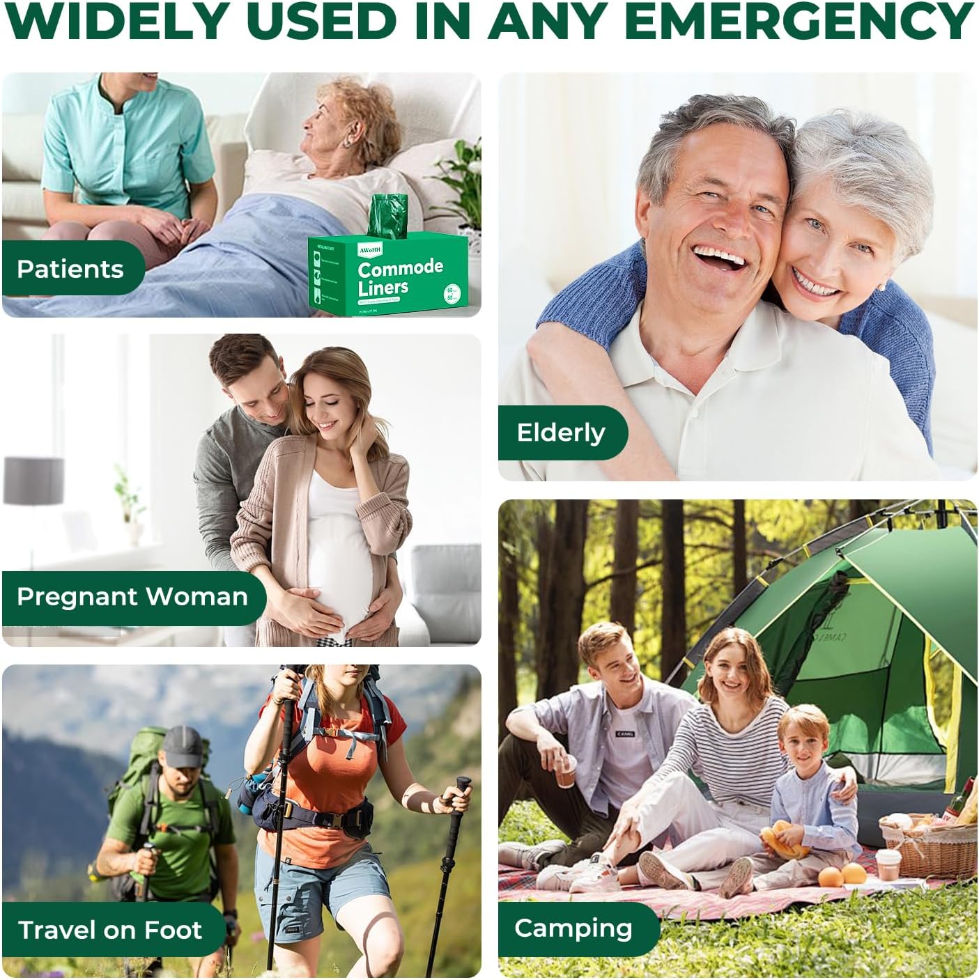 • WIDE APPLICATION: Suitable for all standard-size commode buckets and adult potty chairs and baby potty. These commode poop bags with liners are essential for home and travel, especially for seniors, postoperative patients, disabled individuals, pregnant women, campers, travelers, hospitals and home care